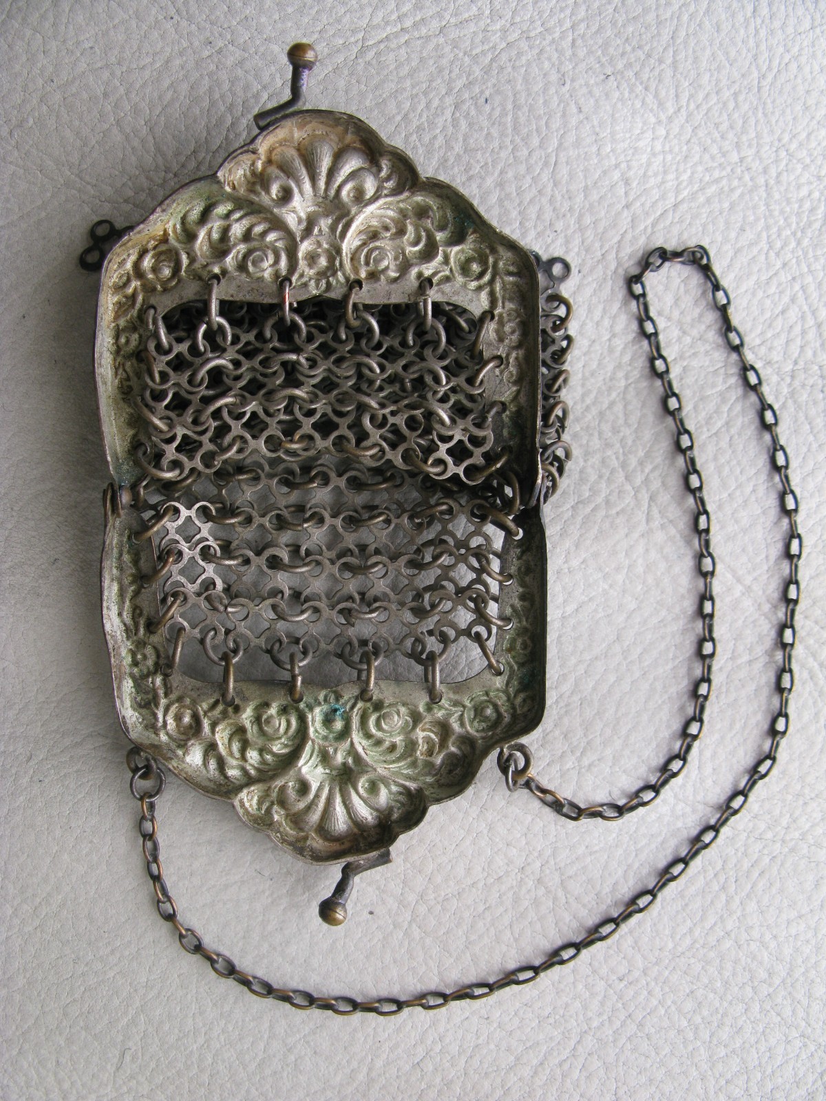 как выглядит Antique Chatelaine Art Nouveau Silver Floral Frame Fancy Tile Mesh Coin Purse фото