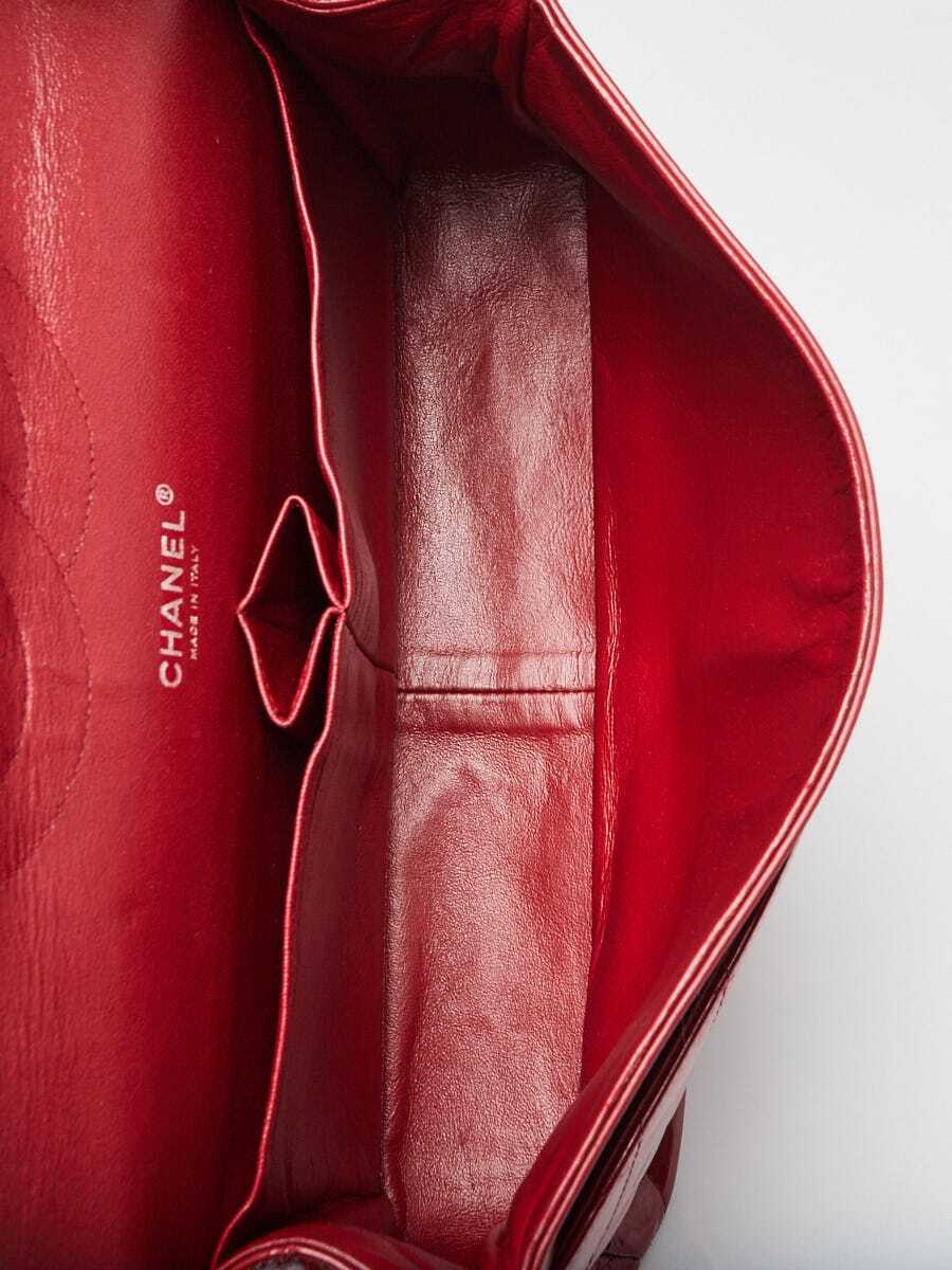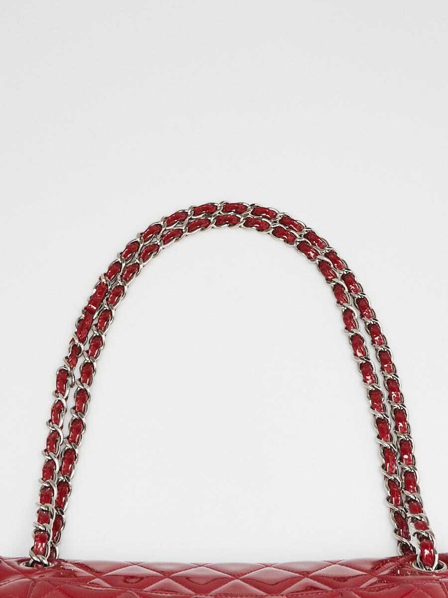 как выглядит Chanel Red Quilted Patent Leather Classic Jumbo Double Flap Bag фото