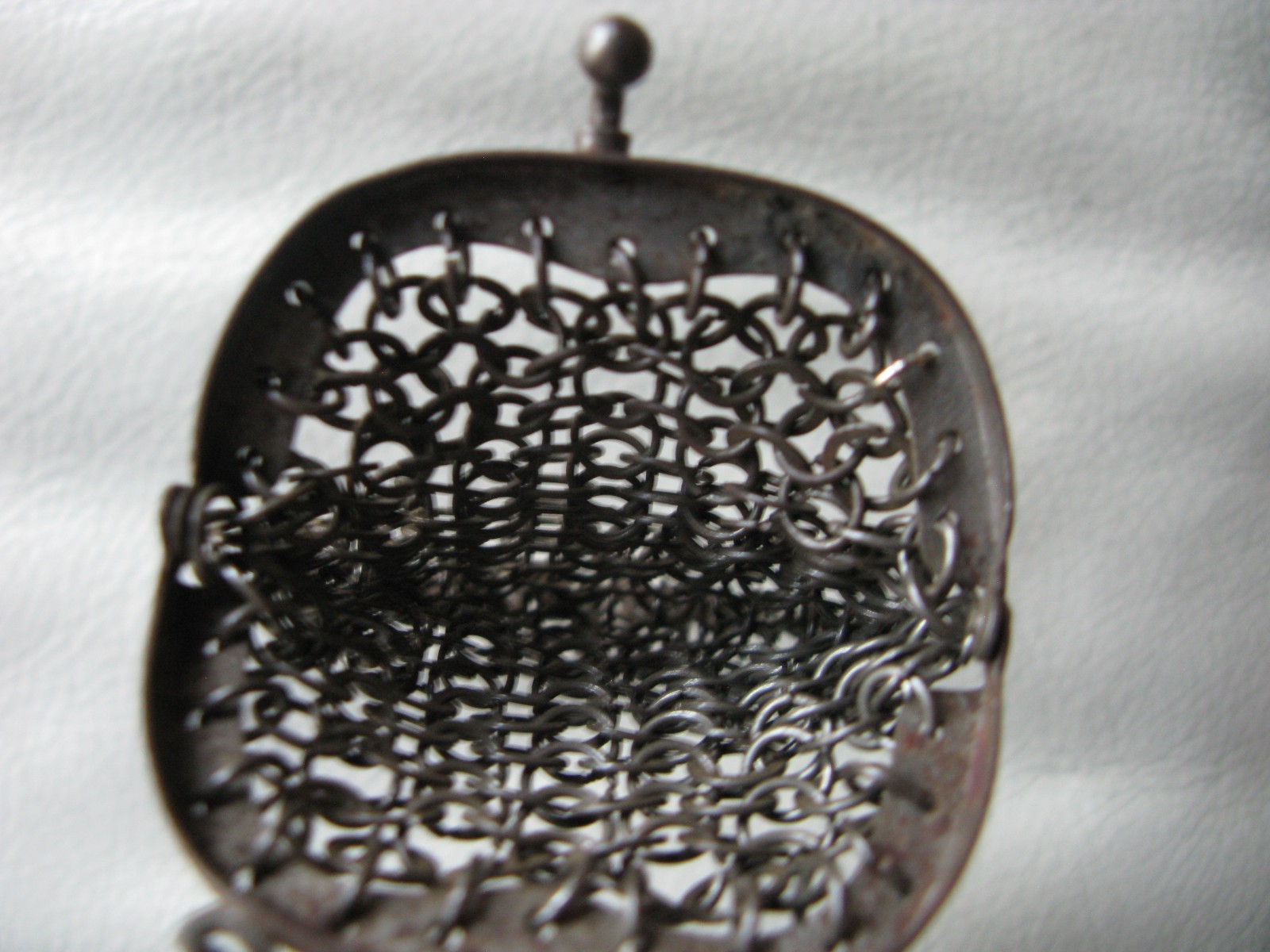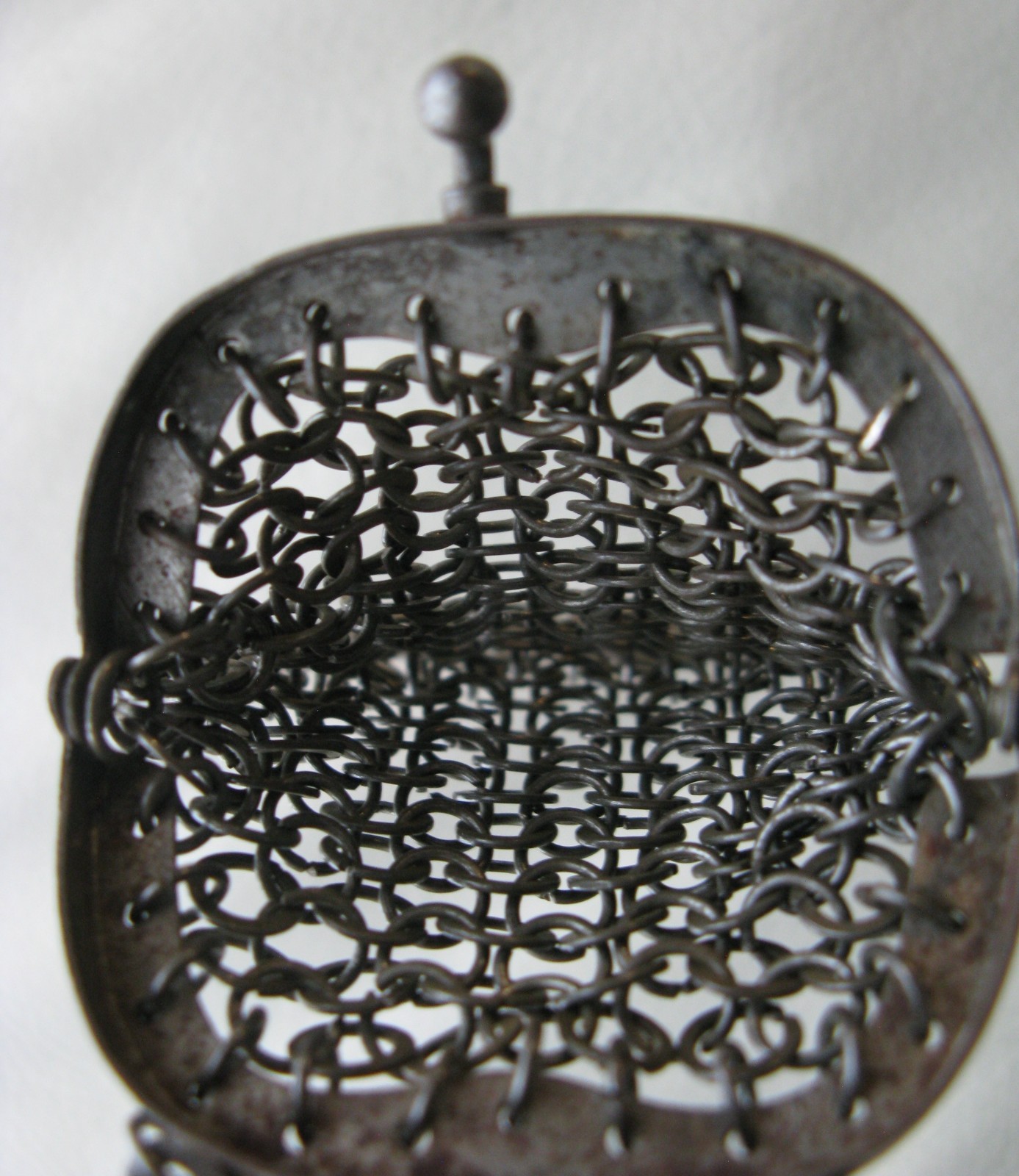 Antique Chatelaine Victorian Silver Frame Chain Mail Flat Ring Mesh Coin Purse 2