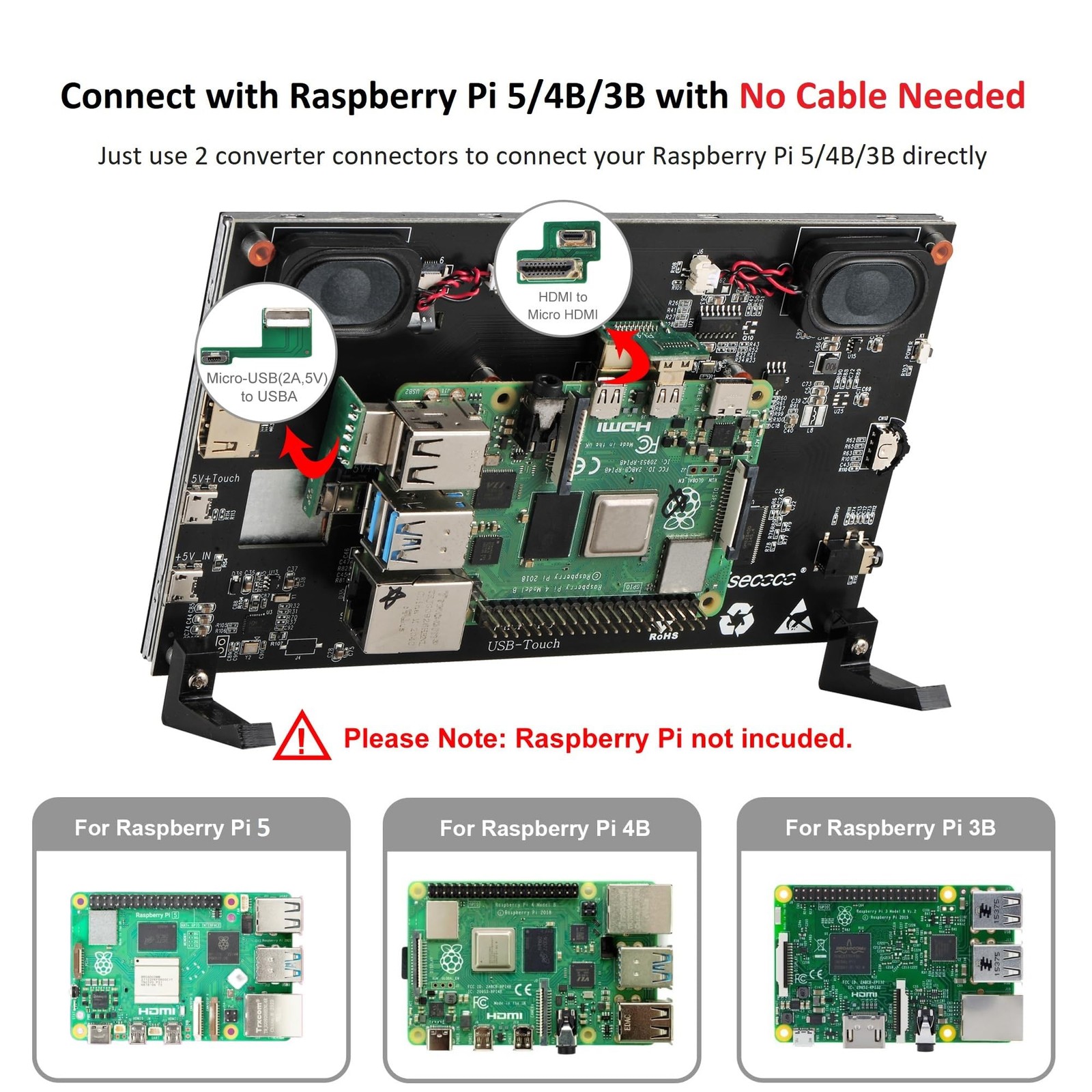 7 inch Raspberry Pi Touch Screen Monitor IPS HDMI Portable Display with Speakers