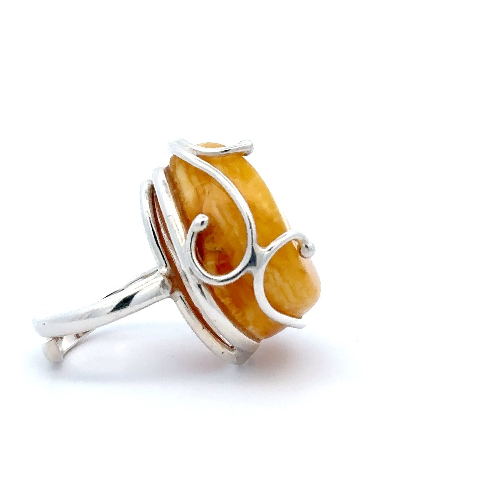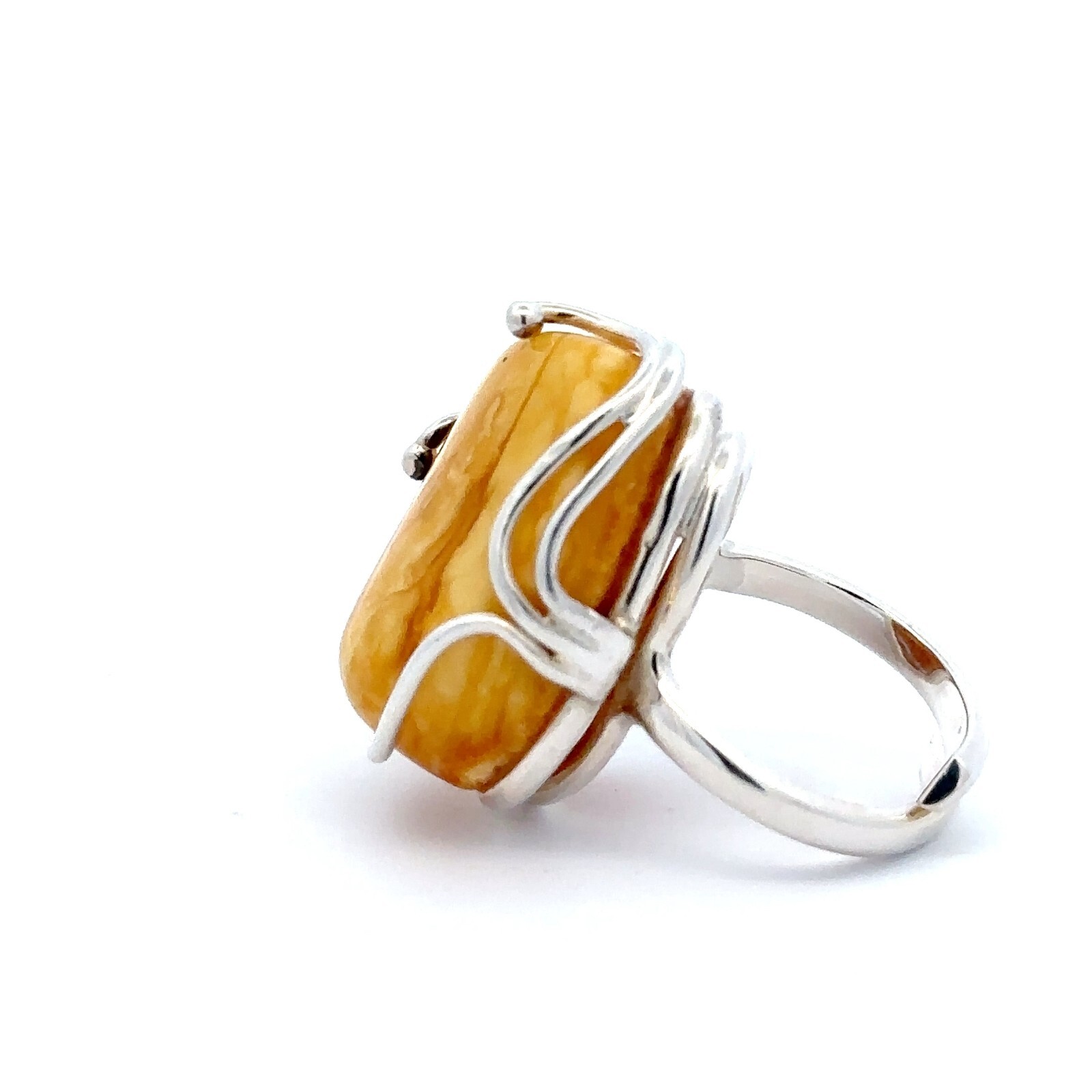 как выглядит Sterling Silver Butterscotch Baltic Amber Ring 1 x 1 1/8 In -Size 8 Adj. Shank фото