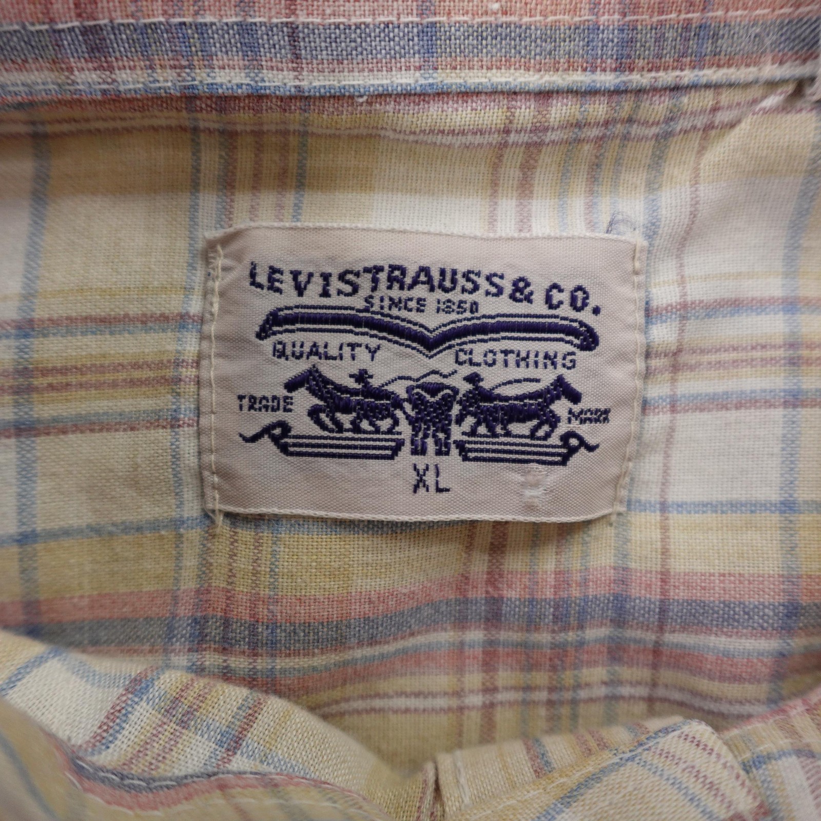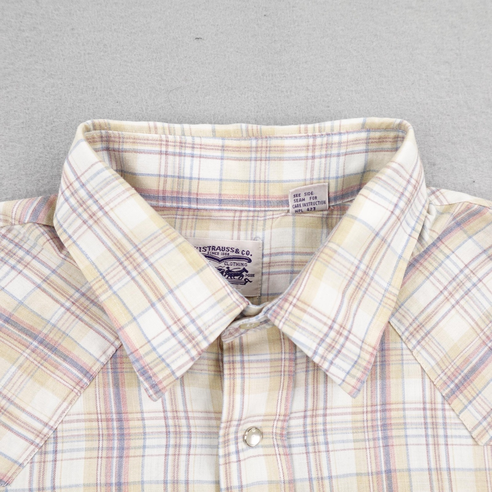 Vintage Levis Shirt Mens XL Beige Plaid Western Pearl Snap White Tab Rodeo 80s