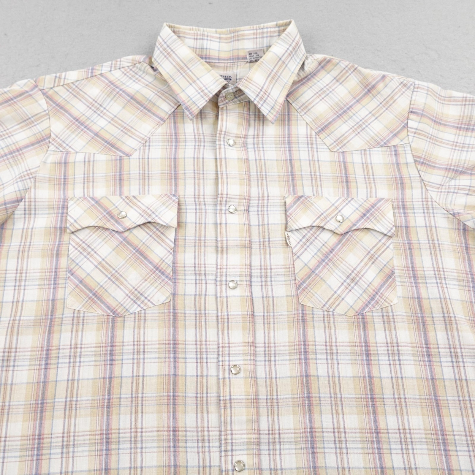 как выглядит Vintage Levis Shirt Mens XL Beige Plaid Western Pearl Snap White Tab Rodeo 80s фото
