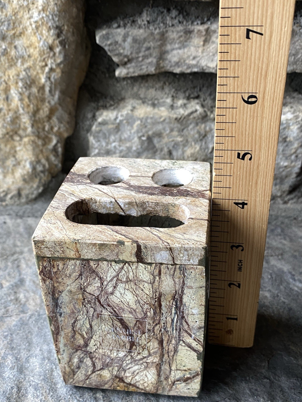 Genuine Marble Bathroom Vanity Brown Tan 2 Toothbrush/Toothpaste Holder
