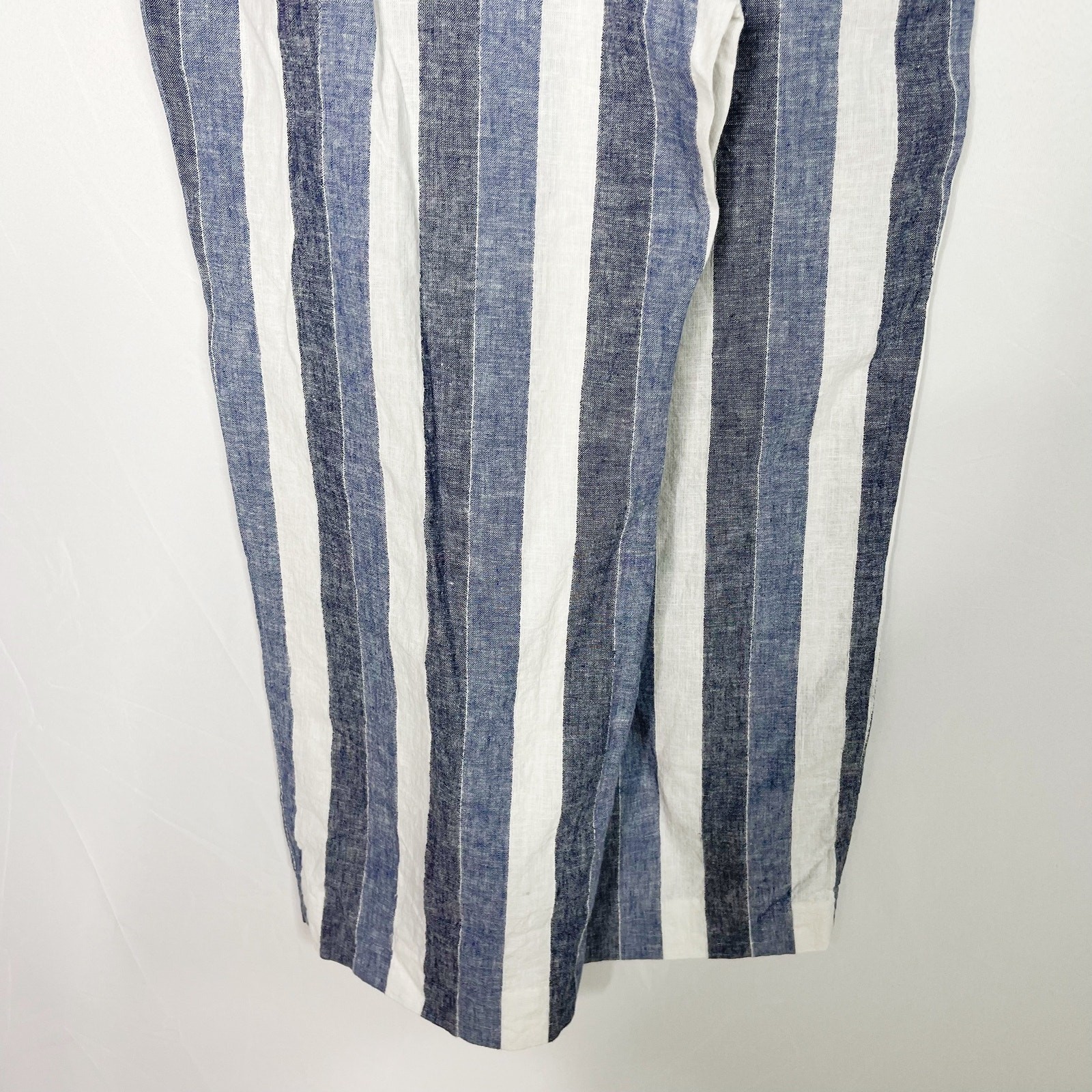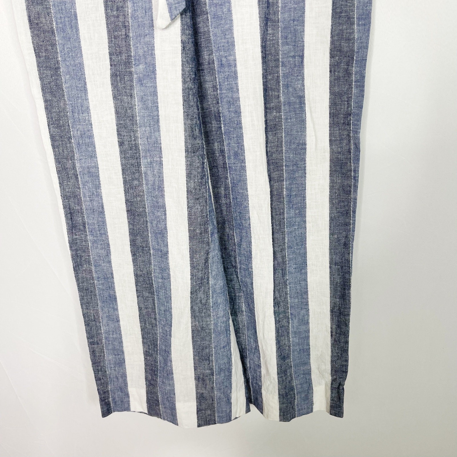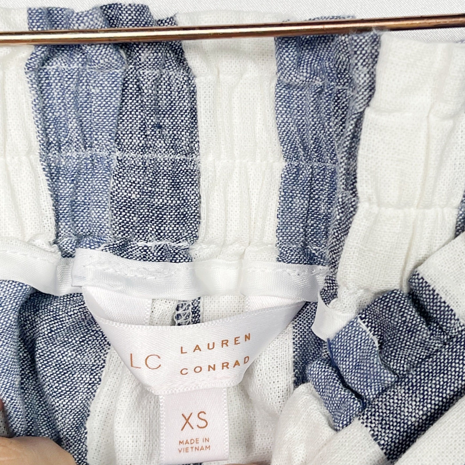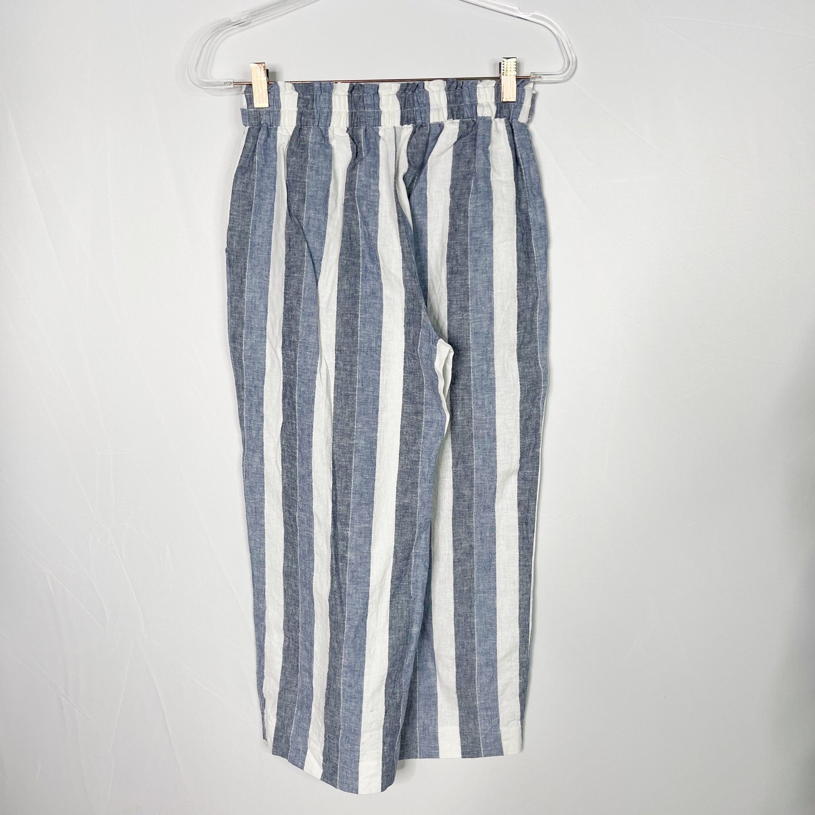 LC Lauren Conrad XSmall Linen Cotton Striped Wide Leg Cropped Pants Blue White