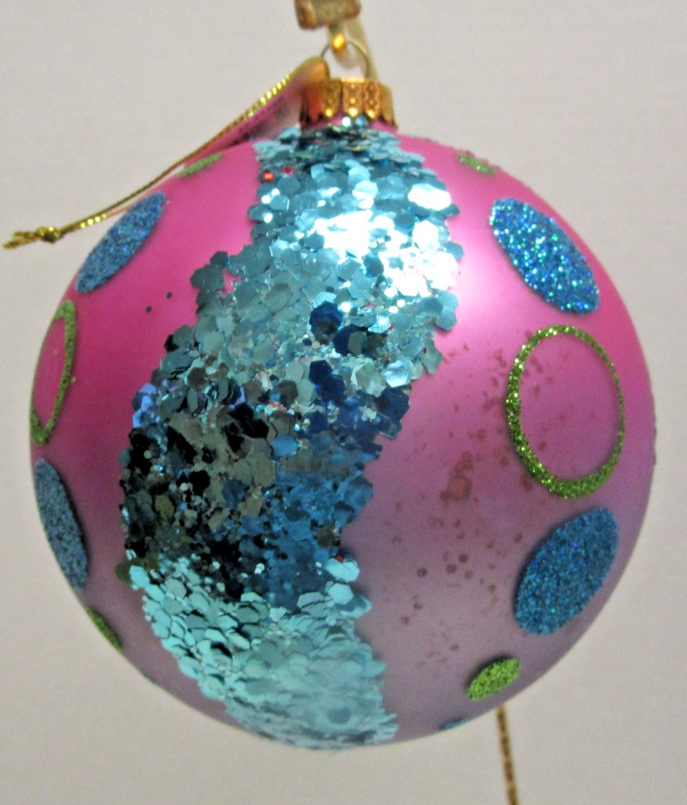 • Lot 2 Katherine's Collection Glass Tree Ornament Jeweled Red Pink Stripes NWT