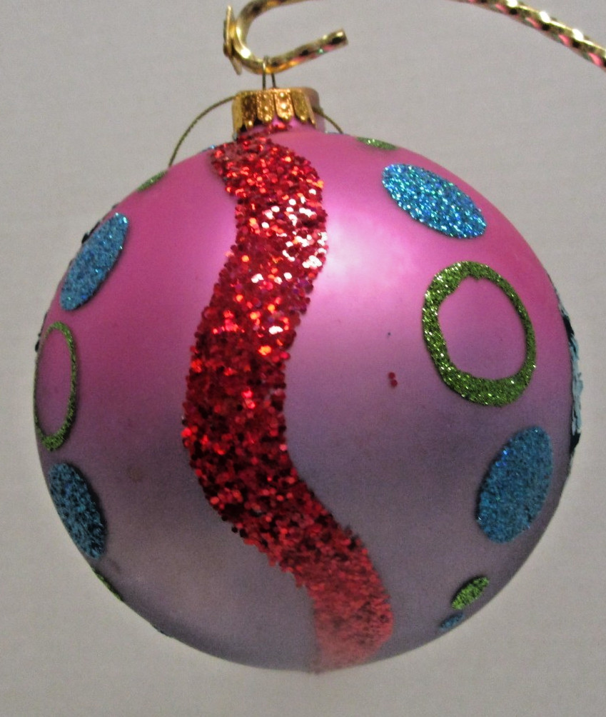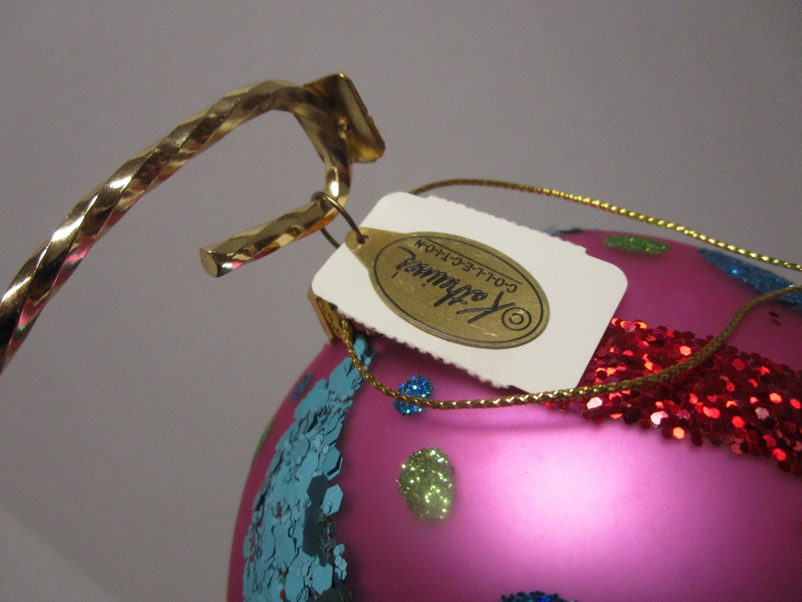 как выглядит Lot 2 Katherines Collection Glass Tree Ornament Jeweled Red Pink Stripes NWT фото