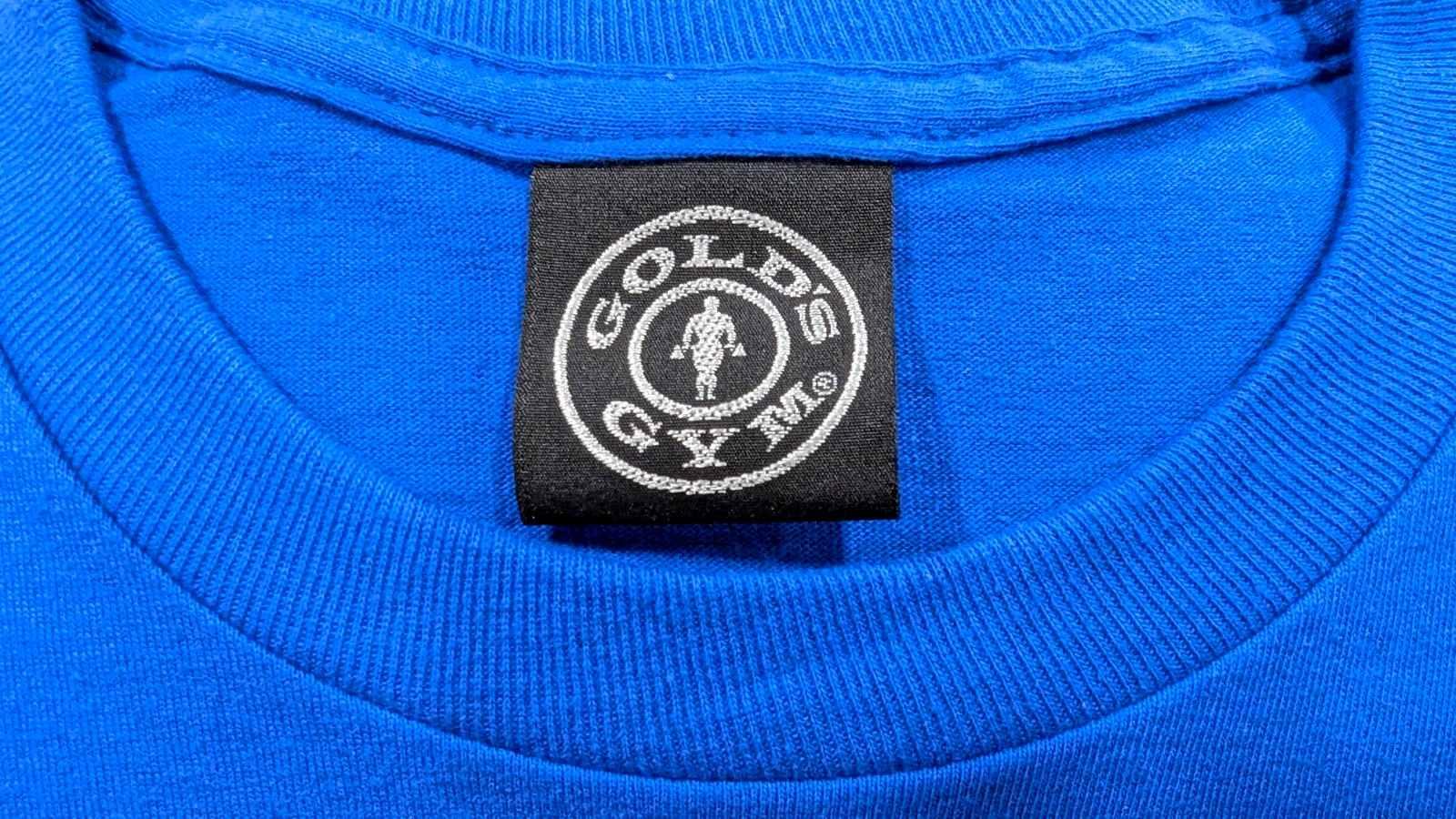 как выглядит GOLDS GYM Mens T-Shirt Bodybuilding Weightlifting Blue/Gold USA Made Size L фото