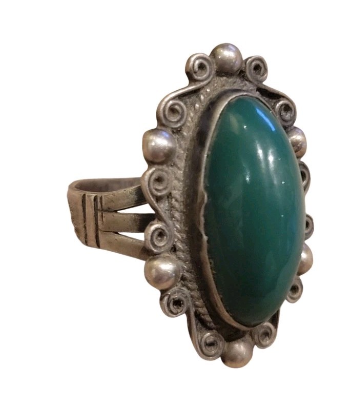 Vintage Sterling Silver Mexico Dark Green Jade Stone Ring Sz 6.5 Signed