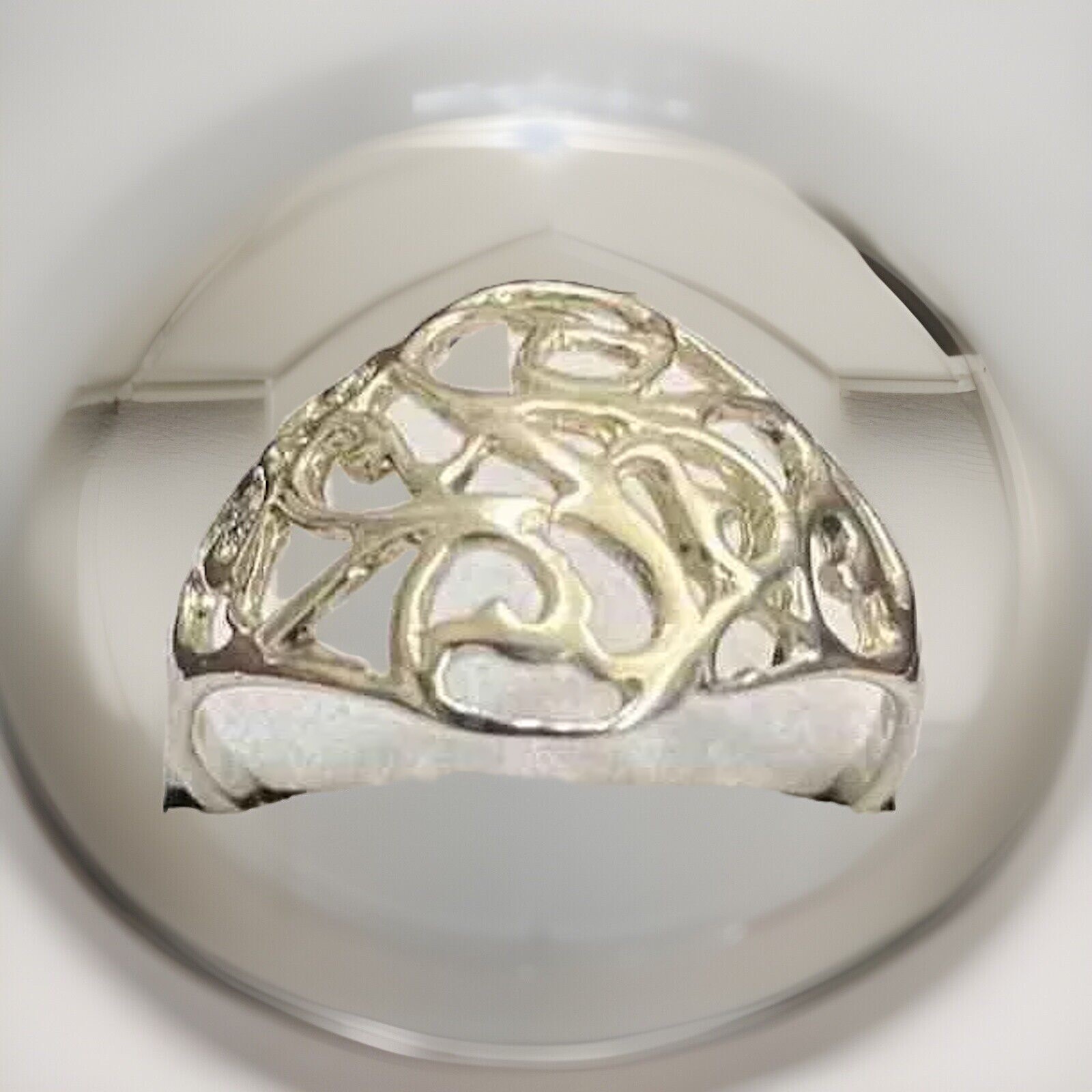 Vintage Cocktail sterling silver filigree Intricate Design ring size 7.75.