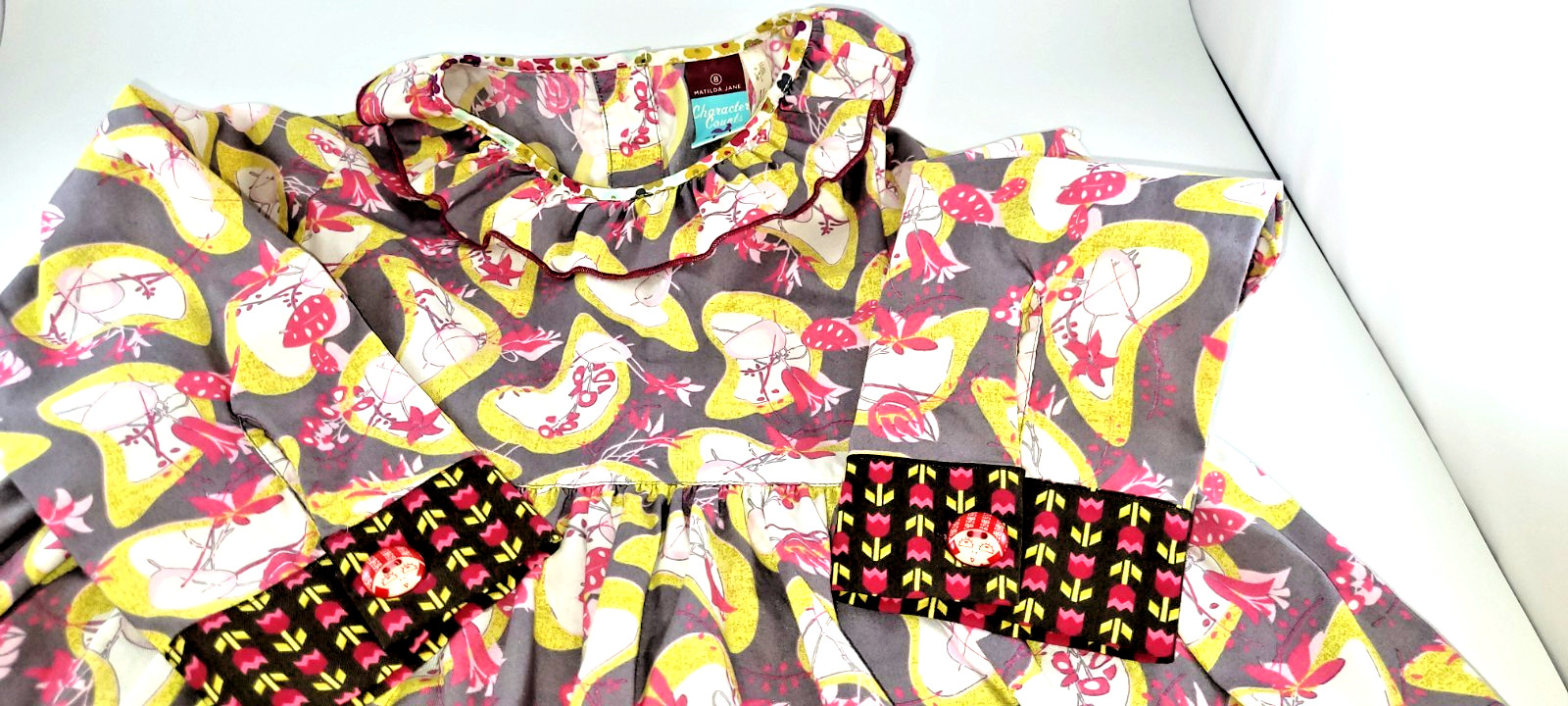 Matilda Jane Character Count Girl Dress Long Sleeve Sz 8 Gray Pinks Lined Floral