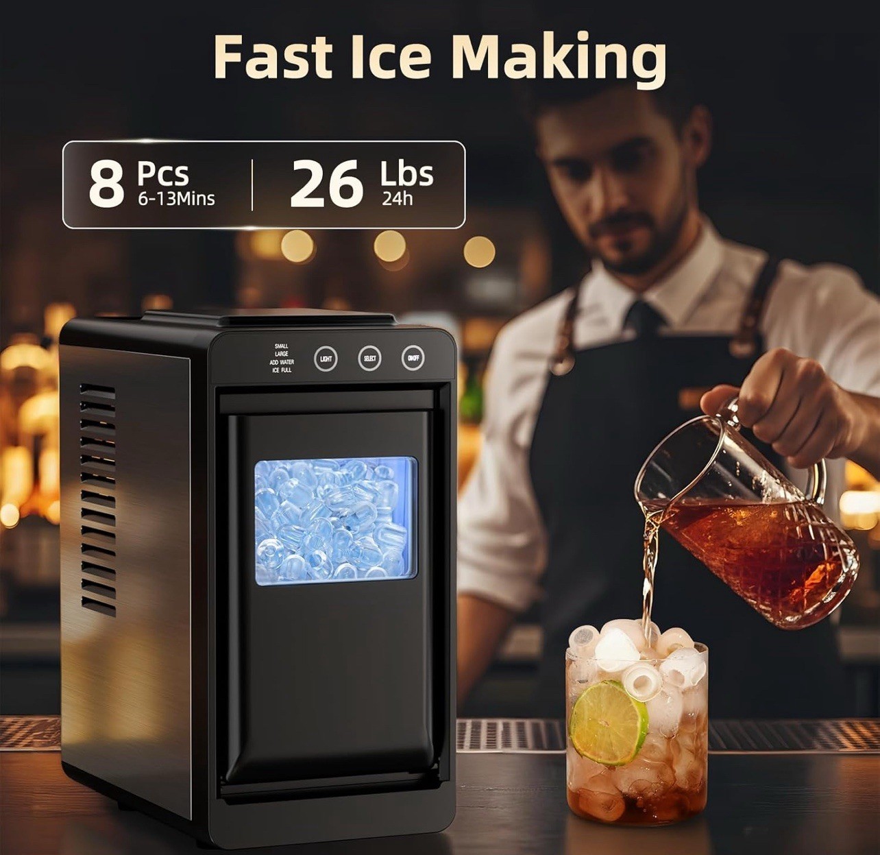 Antarctic Star Ice Maker 26.5lb/24hrs, 8 Cubes in 6 Minutes Bullet Ice 2 Sizes