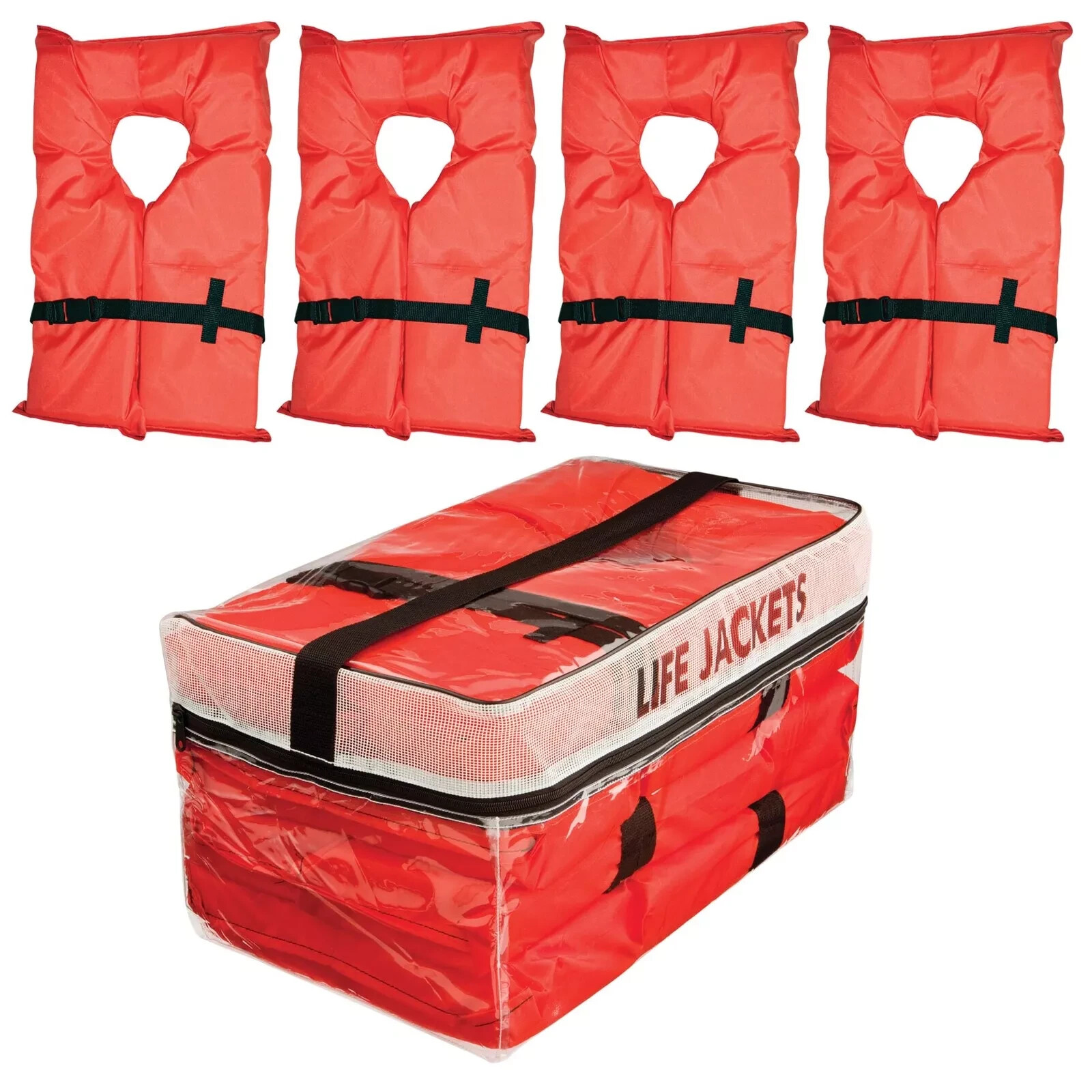 Included Components: Adult Universal Type II USCGA Life Vest Pack, Orange, 4-Pack
