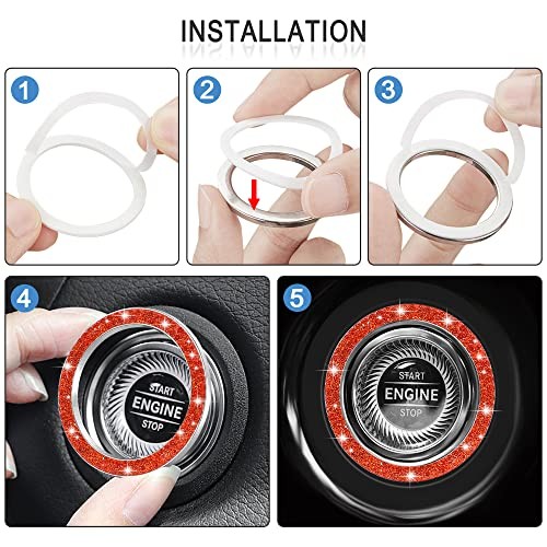 2pcs Bling Car Engine Start Button Cover Ignition Engine Ring-Navy Orange