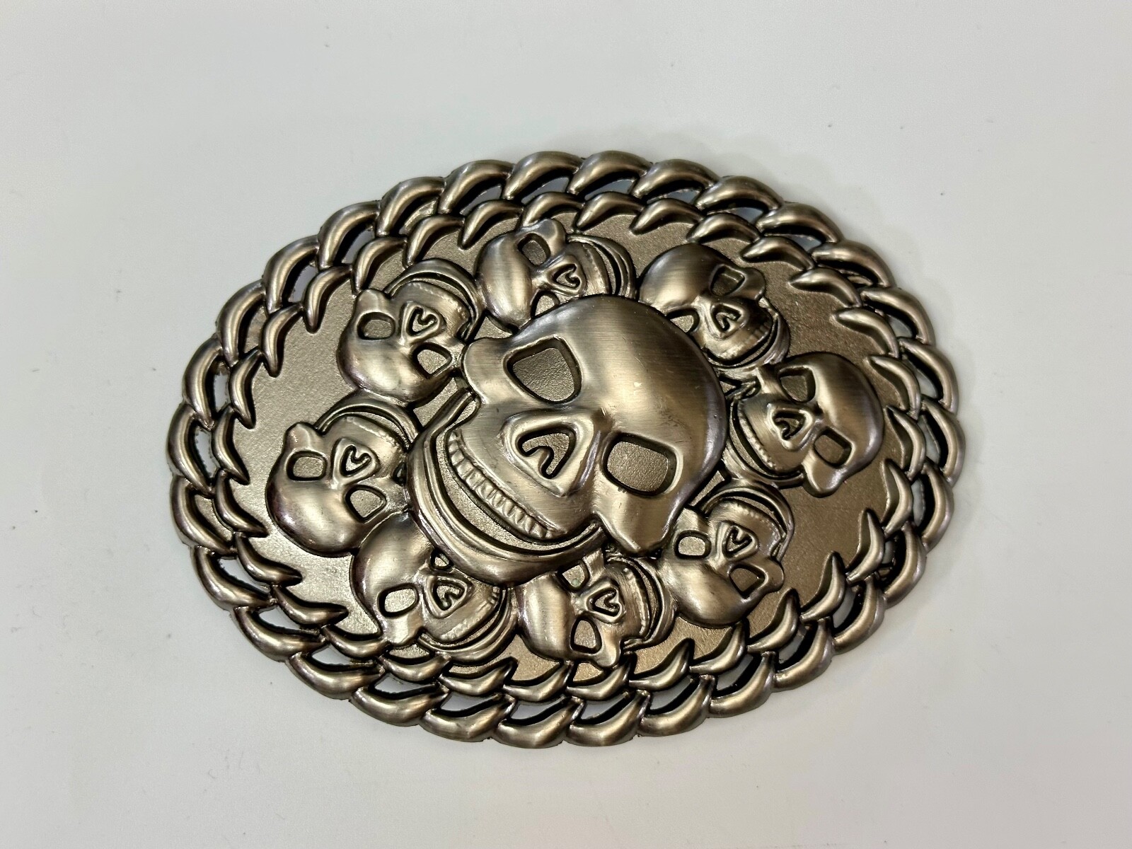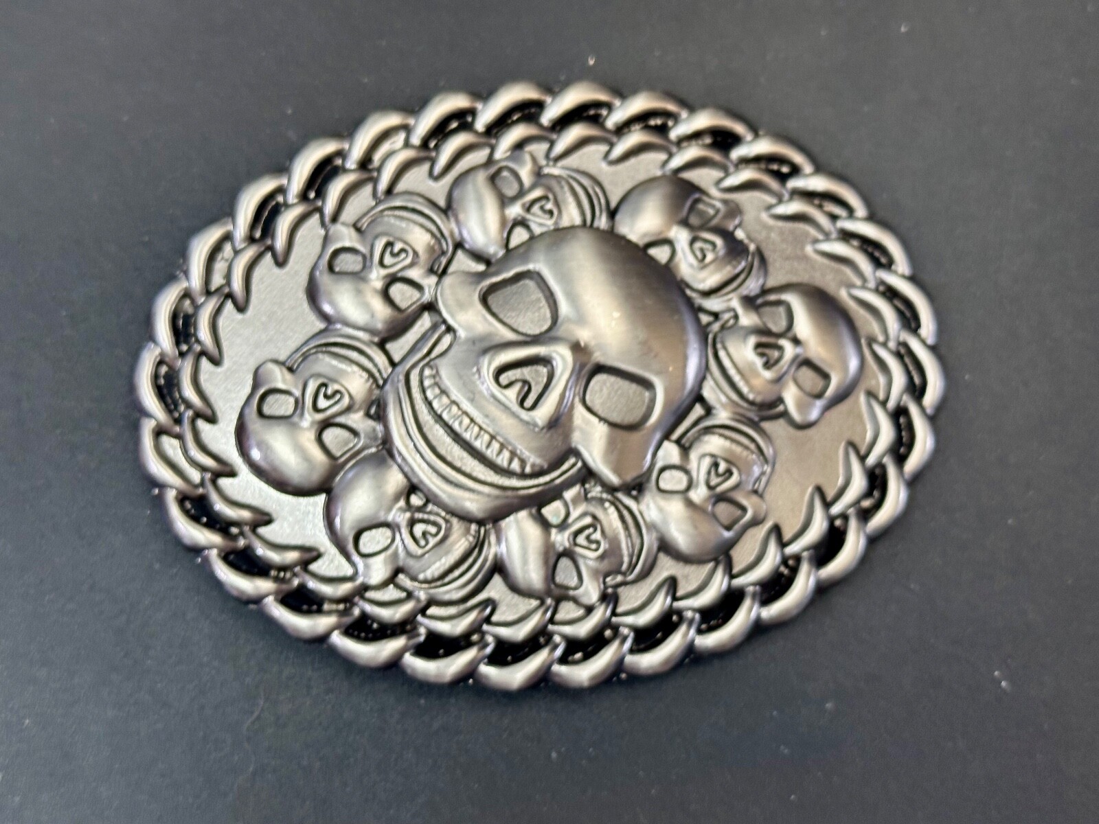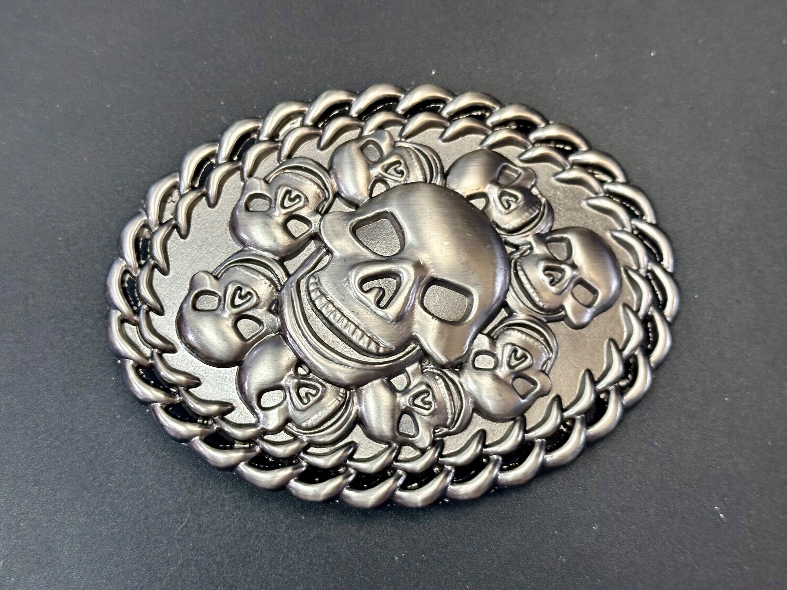 как выглядит Skull Center Surrounded By Multiple Smaller Skulls Large Metal Belt Buckle фото