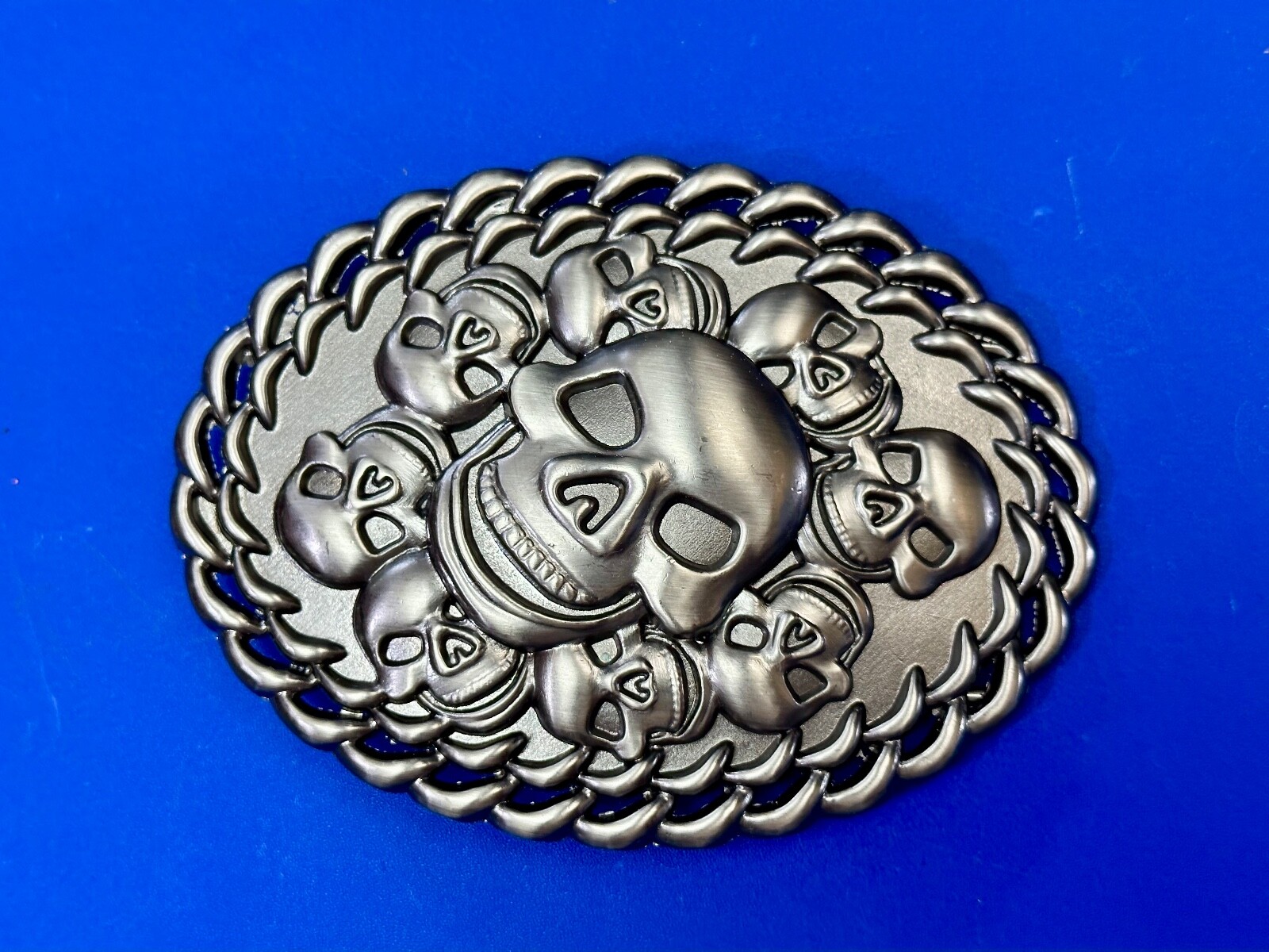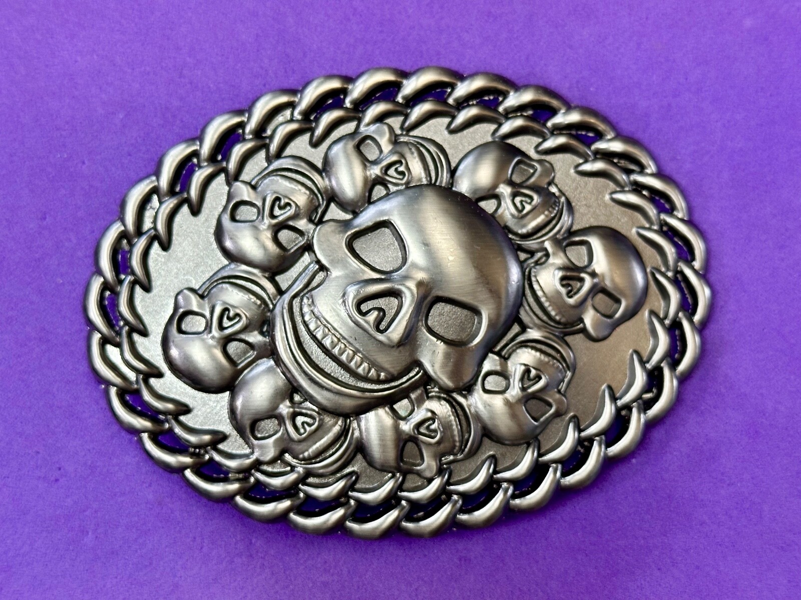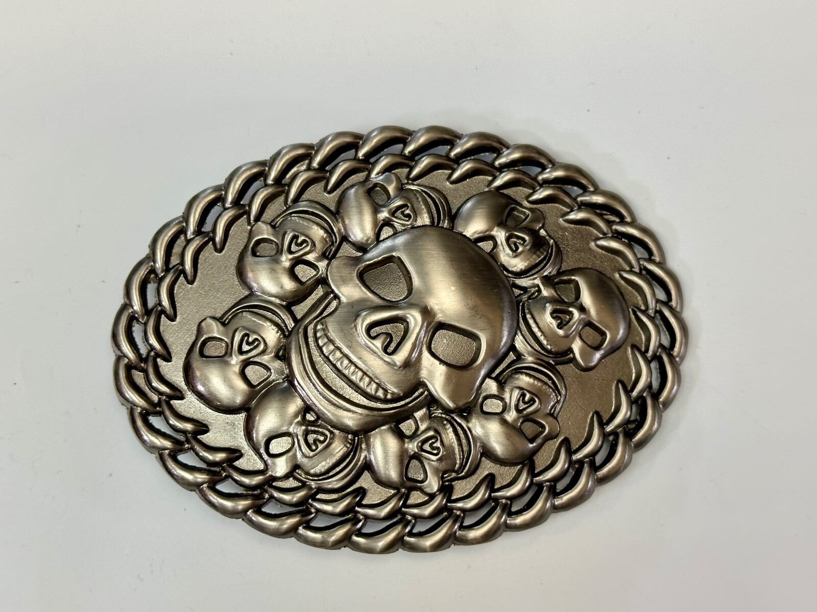 как выглядит Skull Center Surrounded By Multiple Smaller Skulls Large Metal Belt Buckle фото
