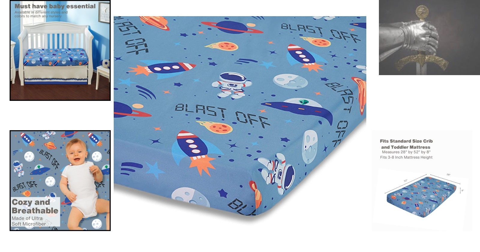 как выглядит Galaxy-Themed Baby Boy Fitted Crib Sheet - Soft Microfiber, Perfect Fit 28x52 фото