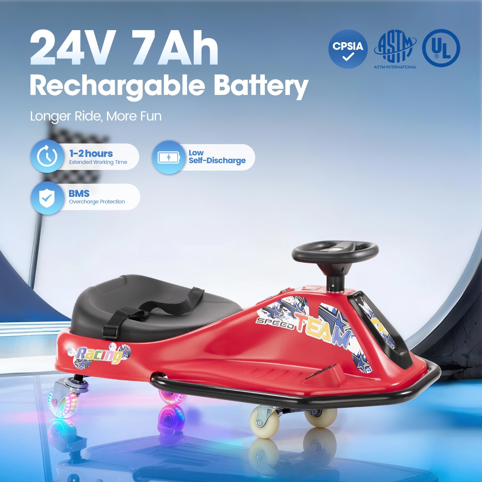24V Electric Go Kart for Kids 3 with Glowing Wheels 360 Spin Safe Ride-On Car
