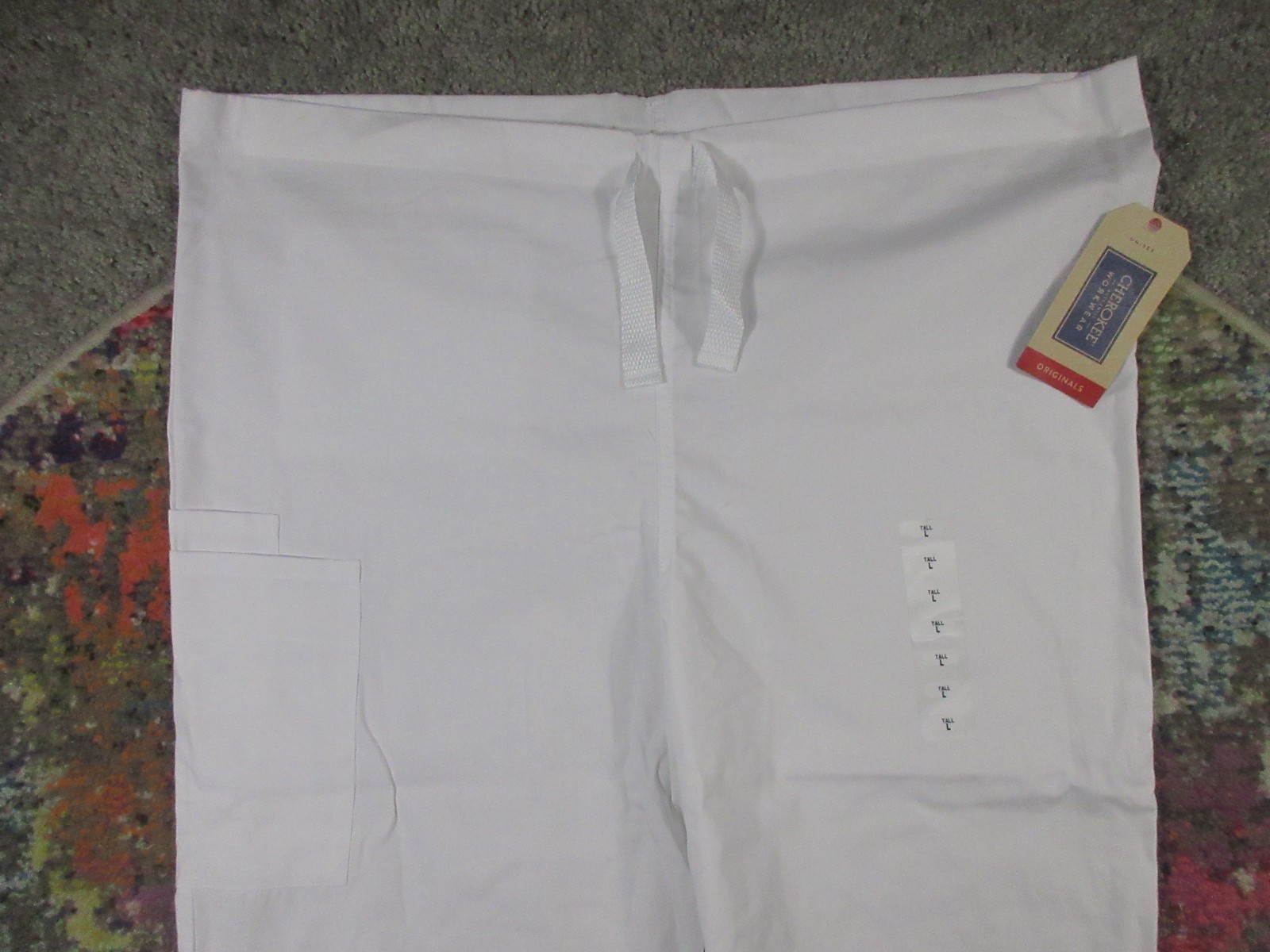 Cherokee Workwear Scrub Pants Adult LT White Classic Drawstring Cargo NEW NWT