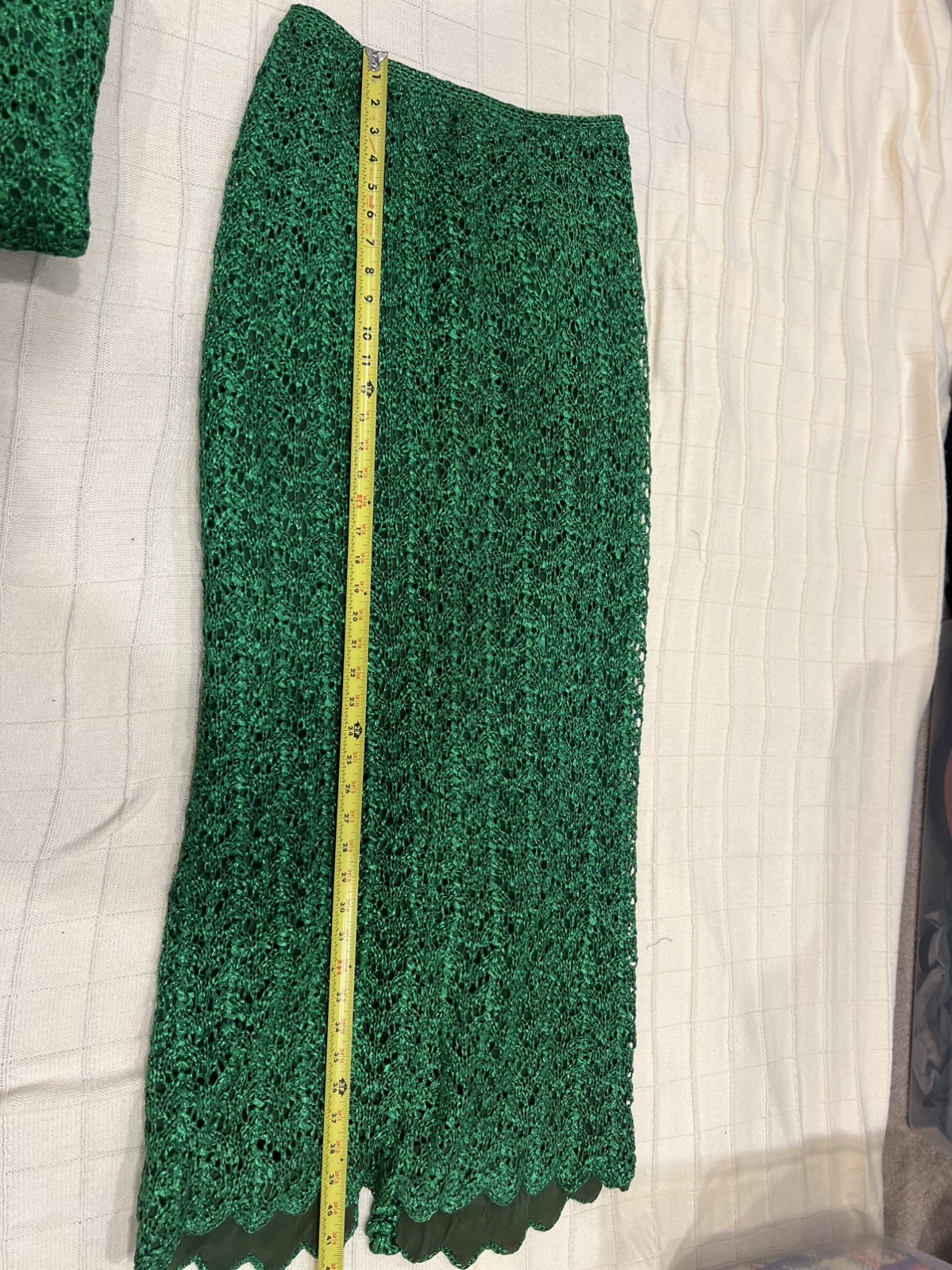 как выглядит Vintage 70s Emerald Crochet Skirt/Jacket Couture Weighted Hem, Designer Estate фото