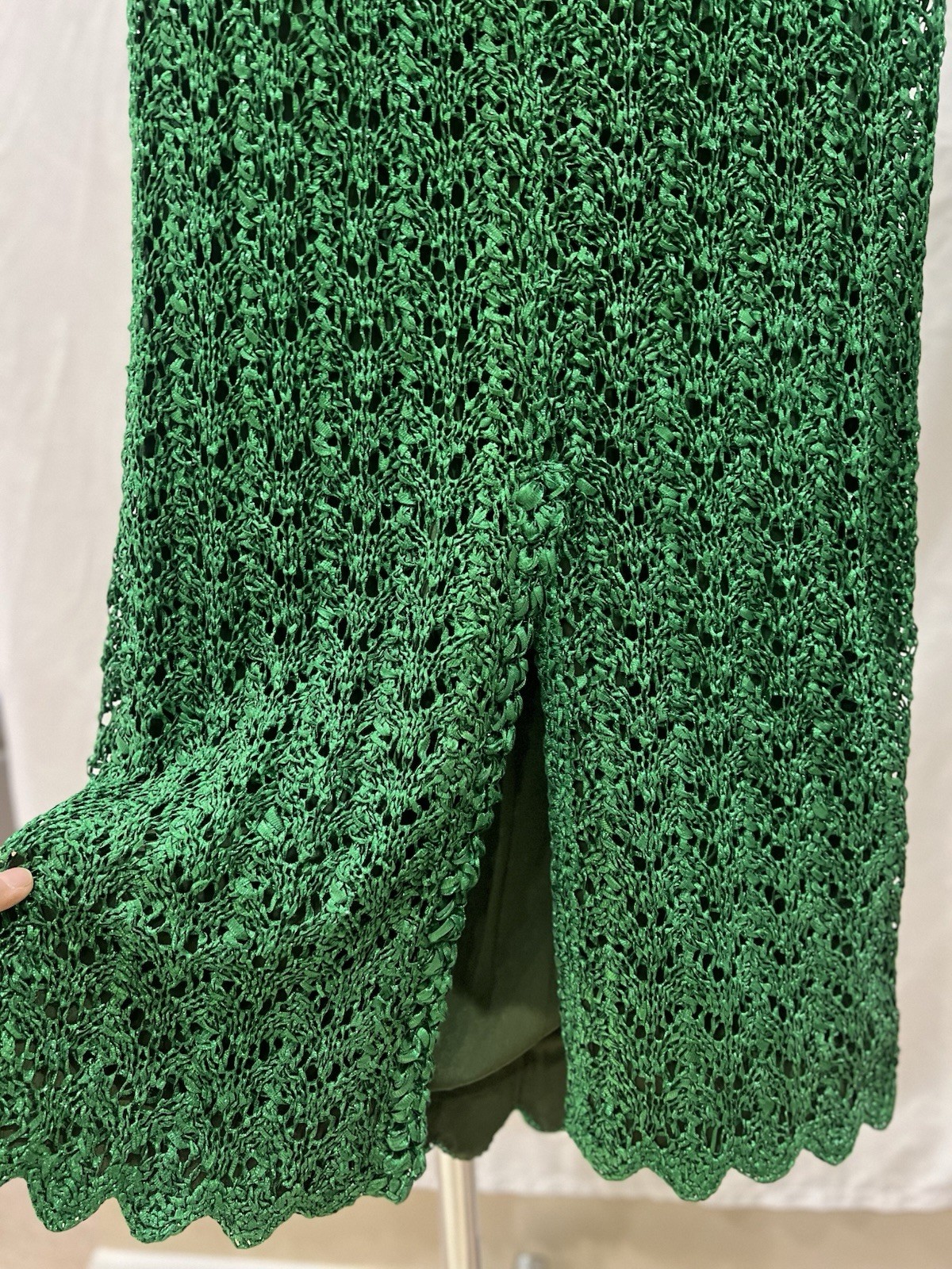 Vintage 70s Emerald Crochet Skirt/Jacket Couture Weighted Hem, Designer Estate
