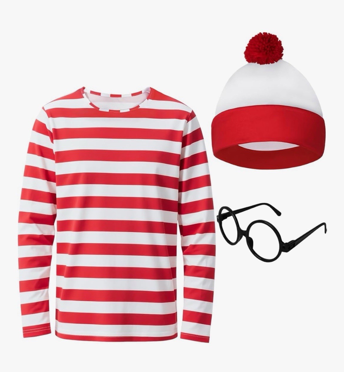 3 Piece Where s Waldo Adult Halloween Costume, Size Medium NEW
