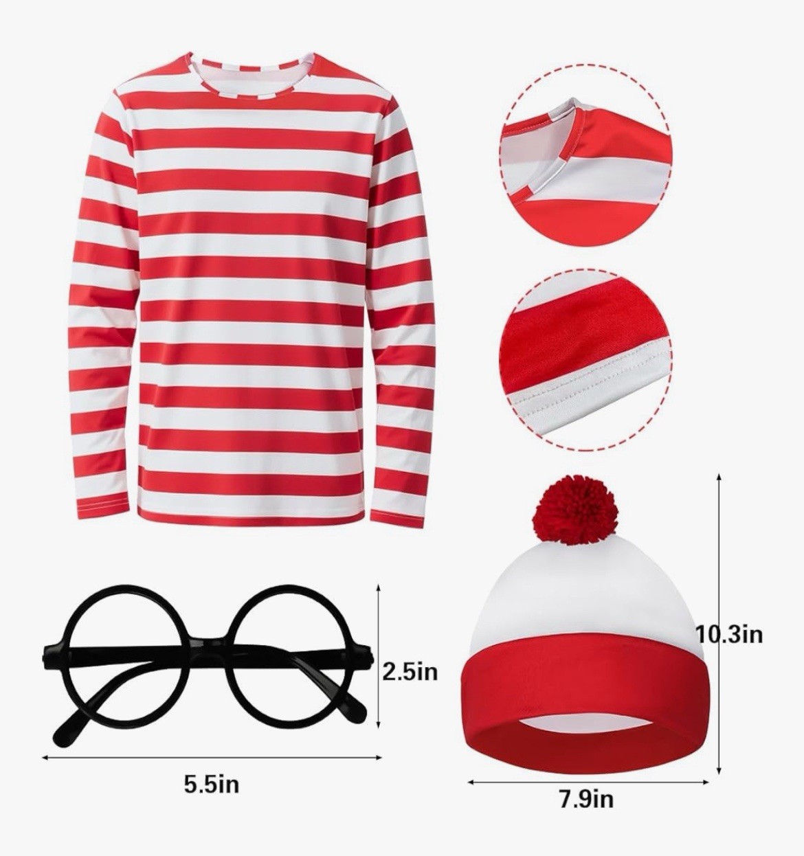 как выглядит 3 Piece Where s Waldo Adult Halloween Costume, Size Medium NEW фото