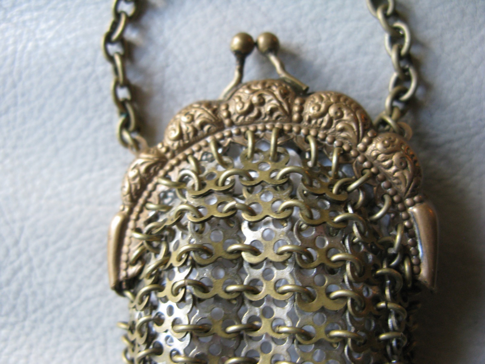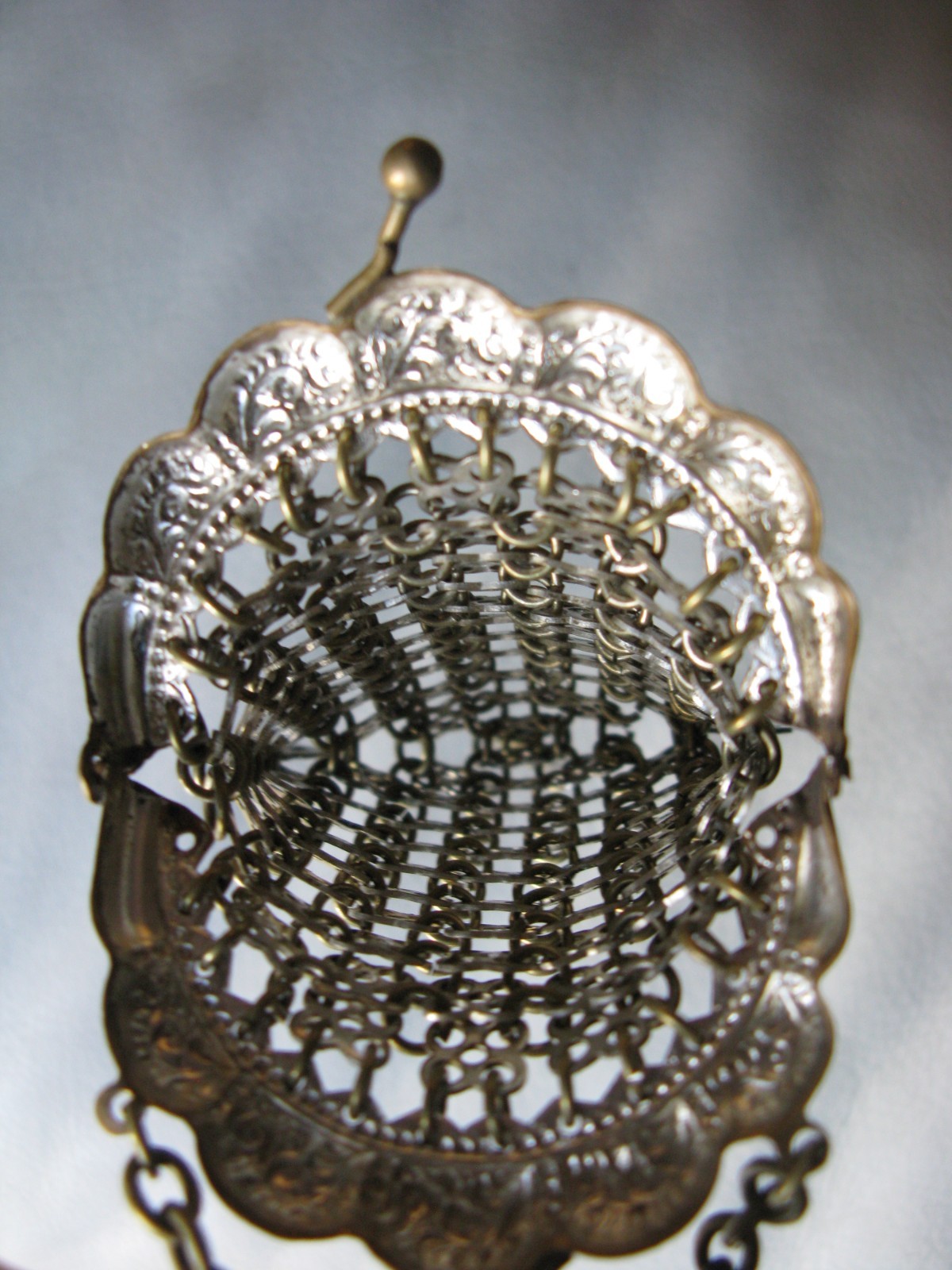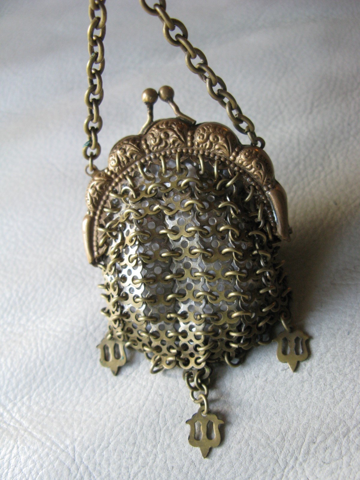 как выглядит Antique Chatelaine Gold Frame Fancy 3 Tassels Chain Mail Mesh Coin Purse фото