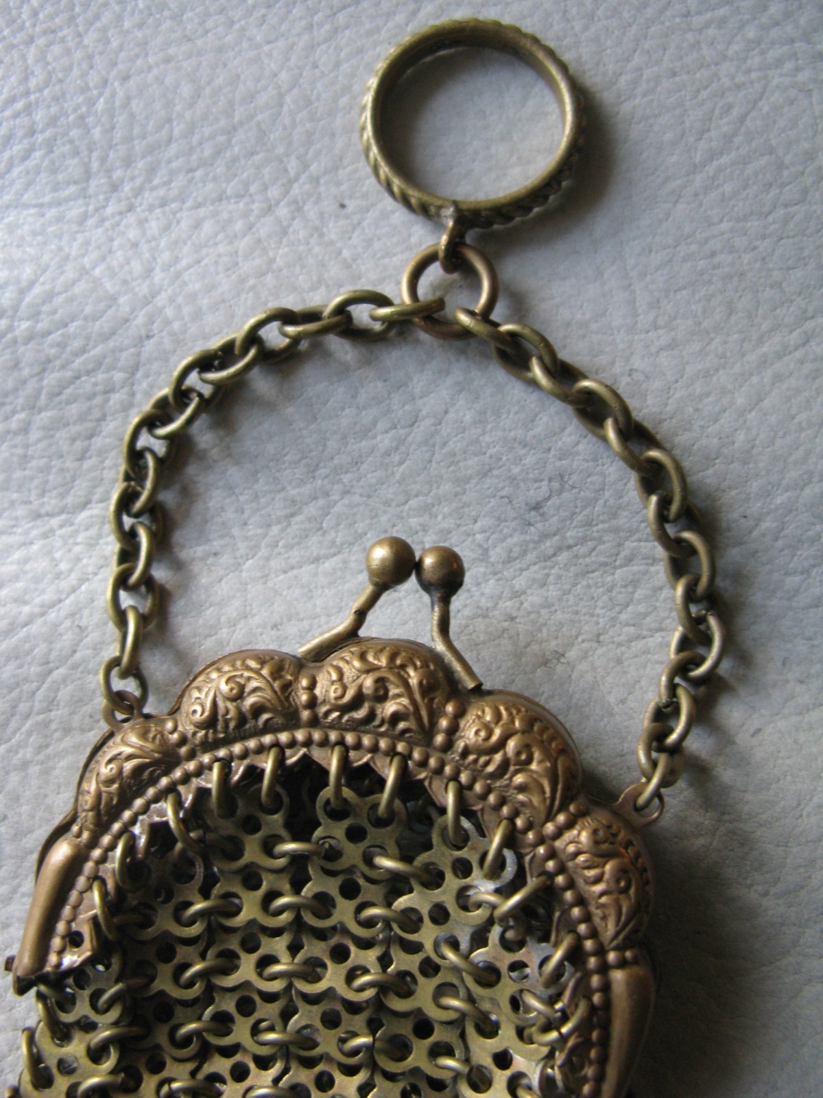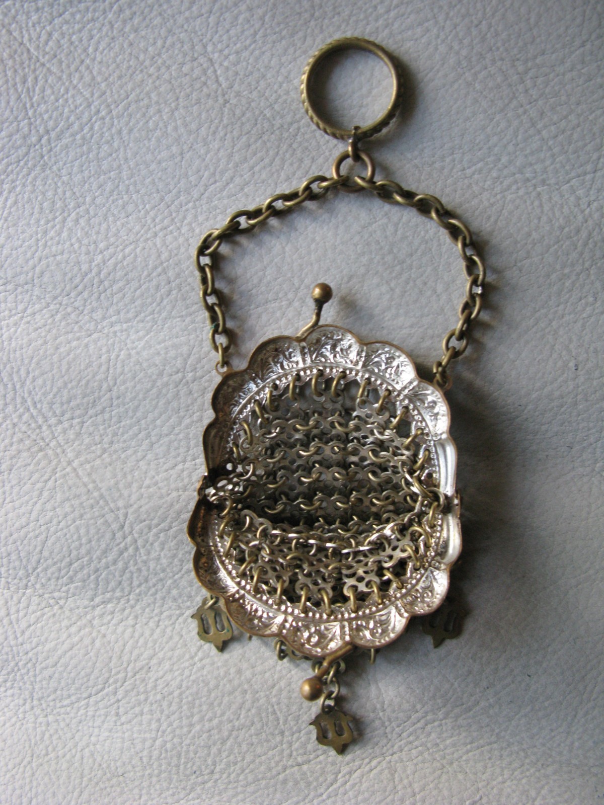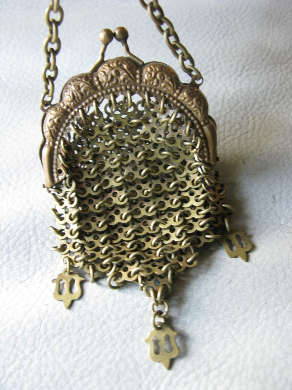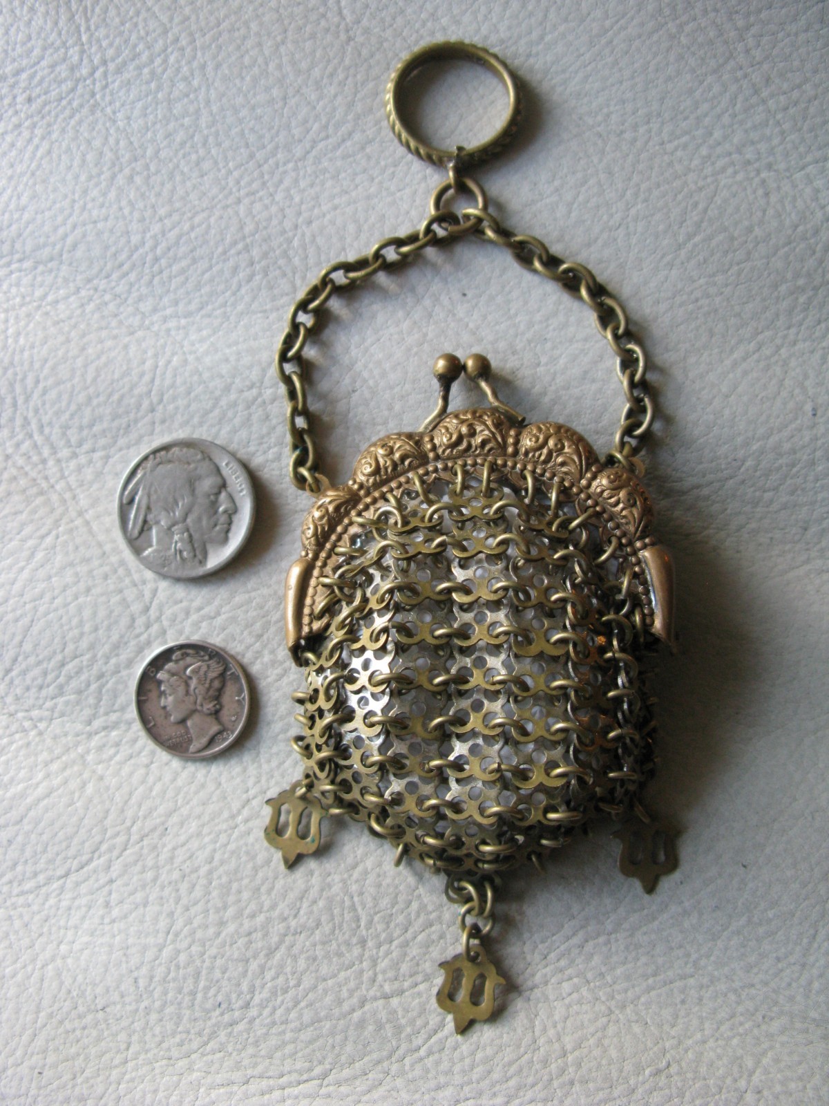 как выглядит Antique Chatelaine Gold Frame Fancy 3 Tassels Chain Mail Mesh Coin Purse фото