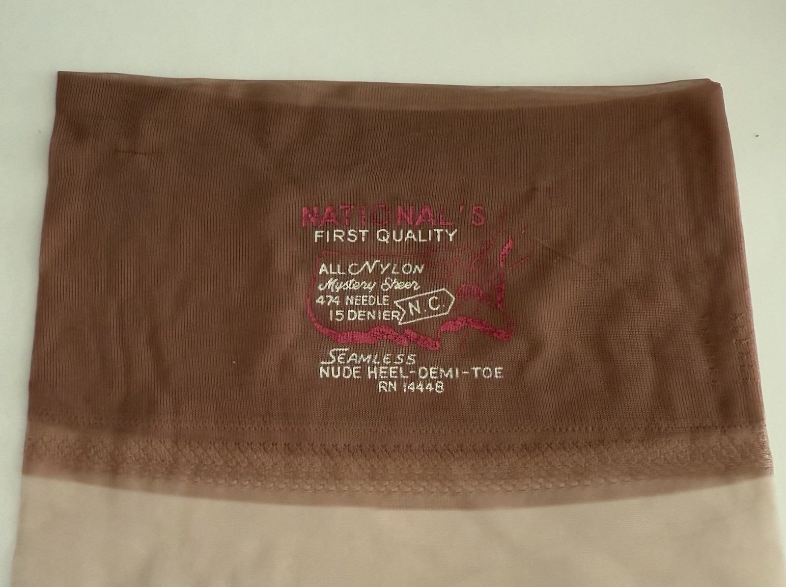Vintage National Seamless Flat Knit Bare Heel Stockings 33 Inches Long