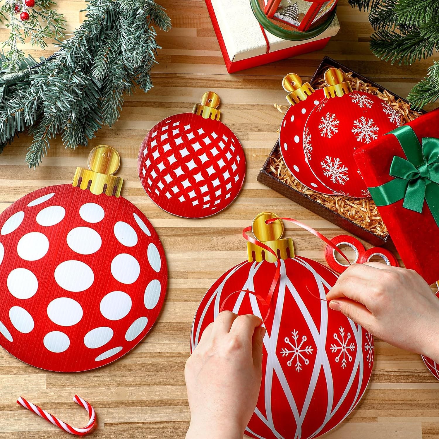 как выглядит 30 Pcs Outdoor Christmas Decorations Double Sided Candy Christmas Ornaments Hang фото