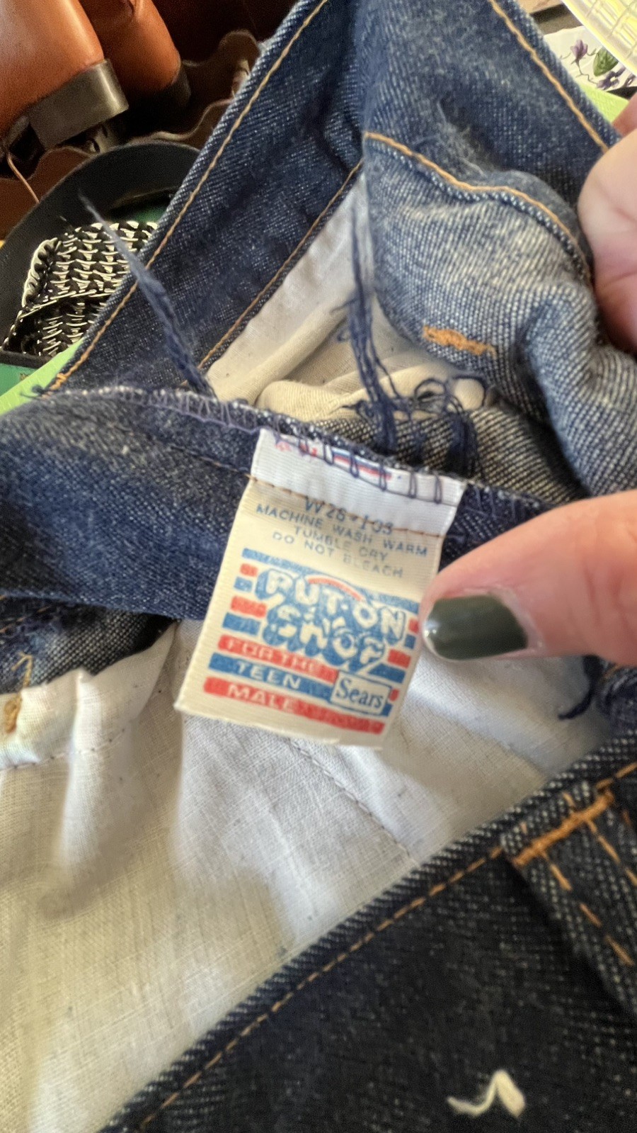 как выглядит Vtg Flare Jeans Mens/Womens Pleated Bell Bottoms Sears Put On Shop Hippie RARE фото