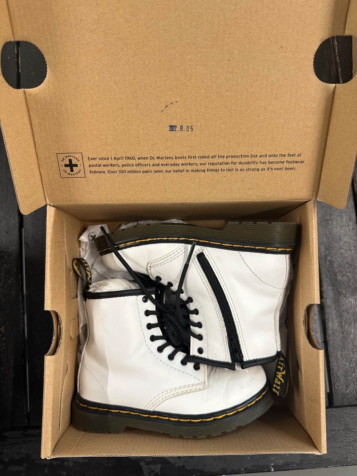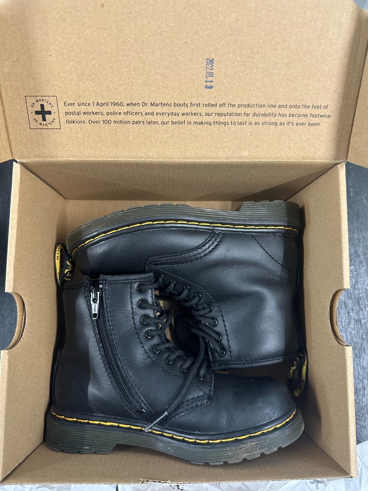 Dr. Martens Boots Toddler 1460T Size 10 Black White Leather Ankle Zip 2 PAIRS
