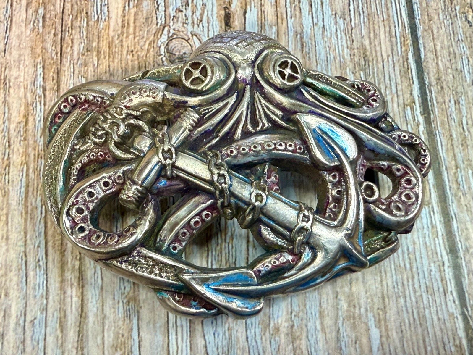 Vintage Steampunk Pirate Octopus Kraken Boat Anchor Chain Nautical Belt Buckle