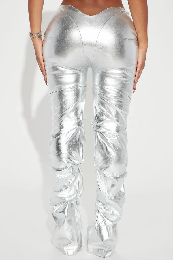 Fashion Nova Silver Faux Leather Rock the Night Stacked Pants, Plus 1X, NEW