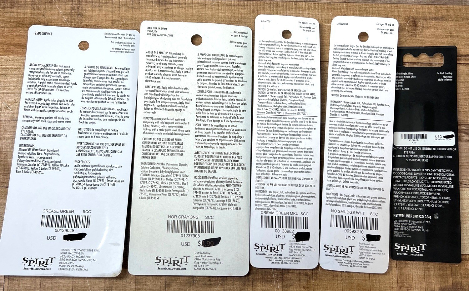 5 Spirit Halloween Makeup Set: Cream Makeup Grease Makeup Green Liner Makeup C
