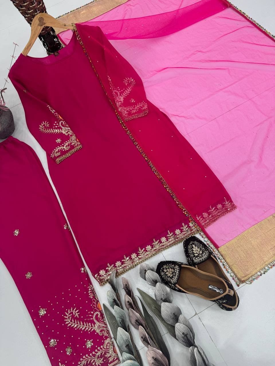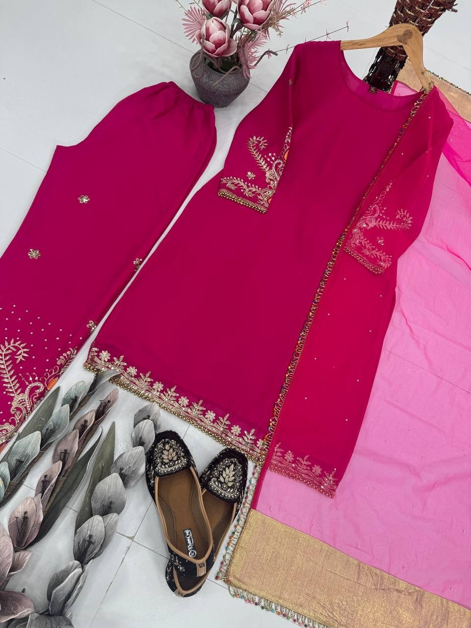 как выглядит Classic Look Faux Georgette Pink Salwar Kameez With Dupatta For Functional фото