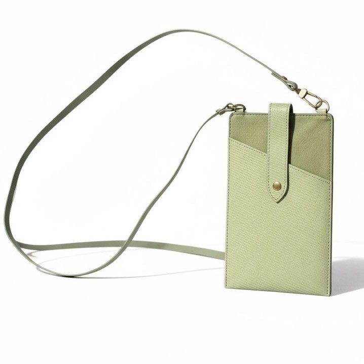 Heyday Crossbody Phone Holder Pouch Sage Green Vegan Leather Strap