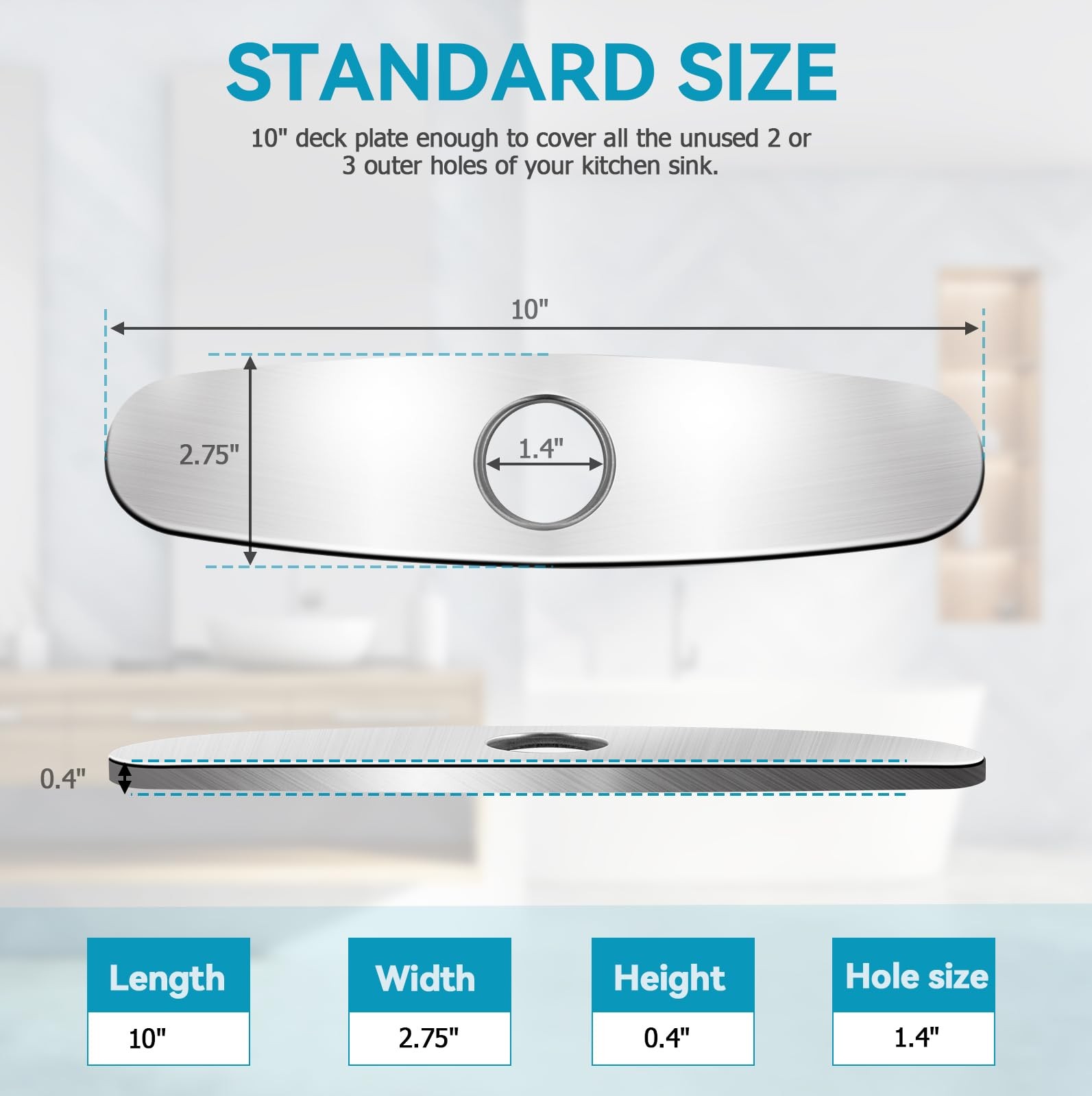 Kitchen Sink Faucet Hole Cover, Deck Plate Escutcheon for Kitchen Faucet- 10 in
