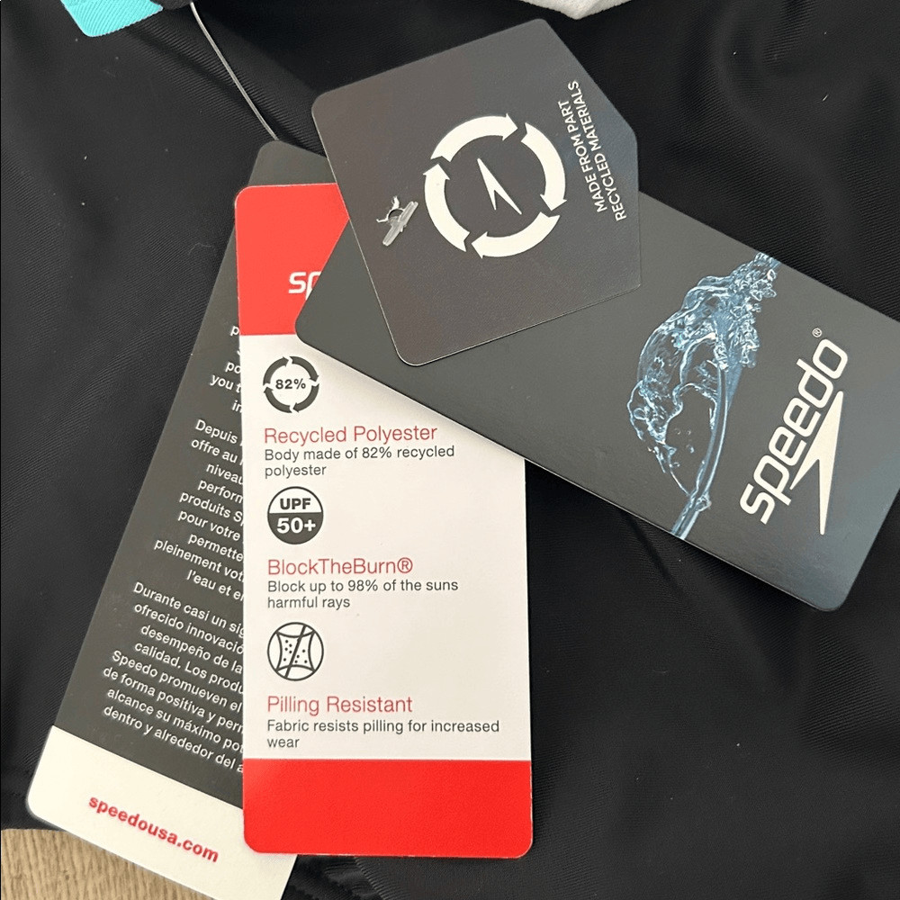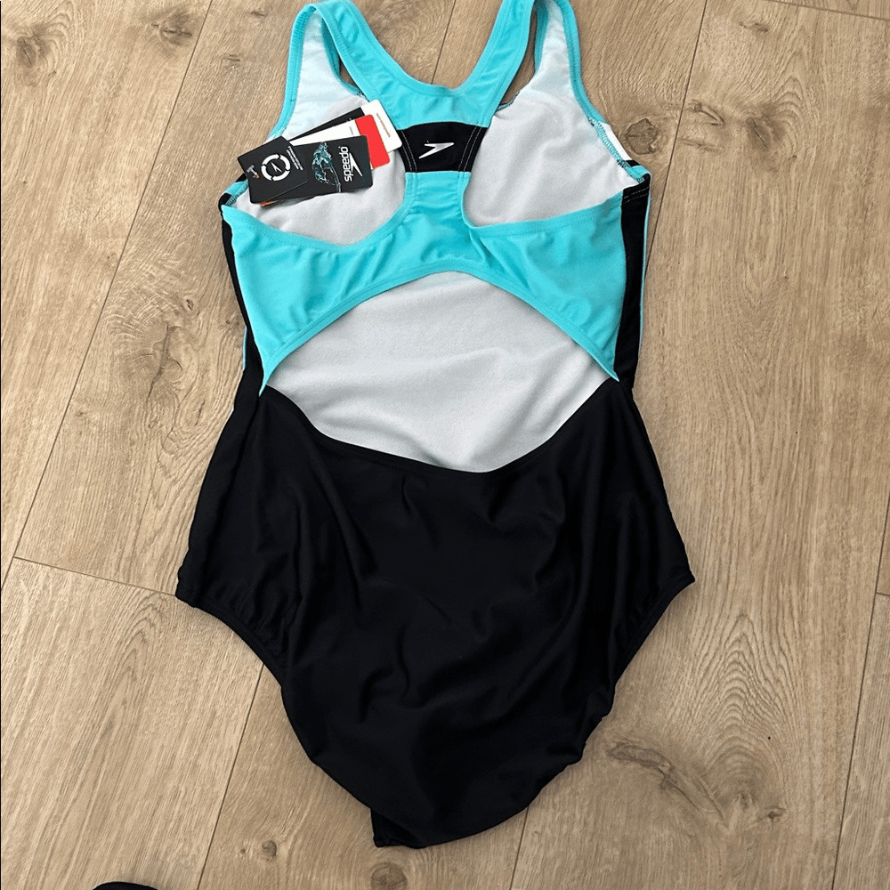 SPEEDO Girls Infinity Splice One Piece Black/Blue, Size 16, NWT