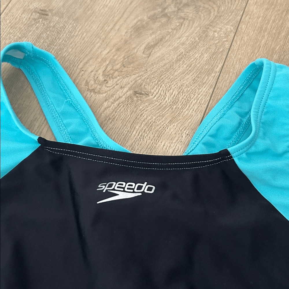 как выглядит SPEEDO Girls Infinity Splice One Piece Black/Blue, Size 16, NWT фото