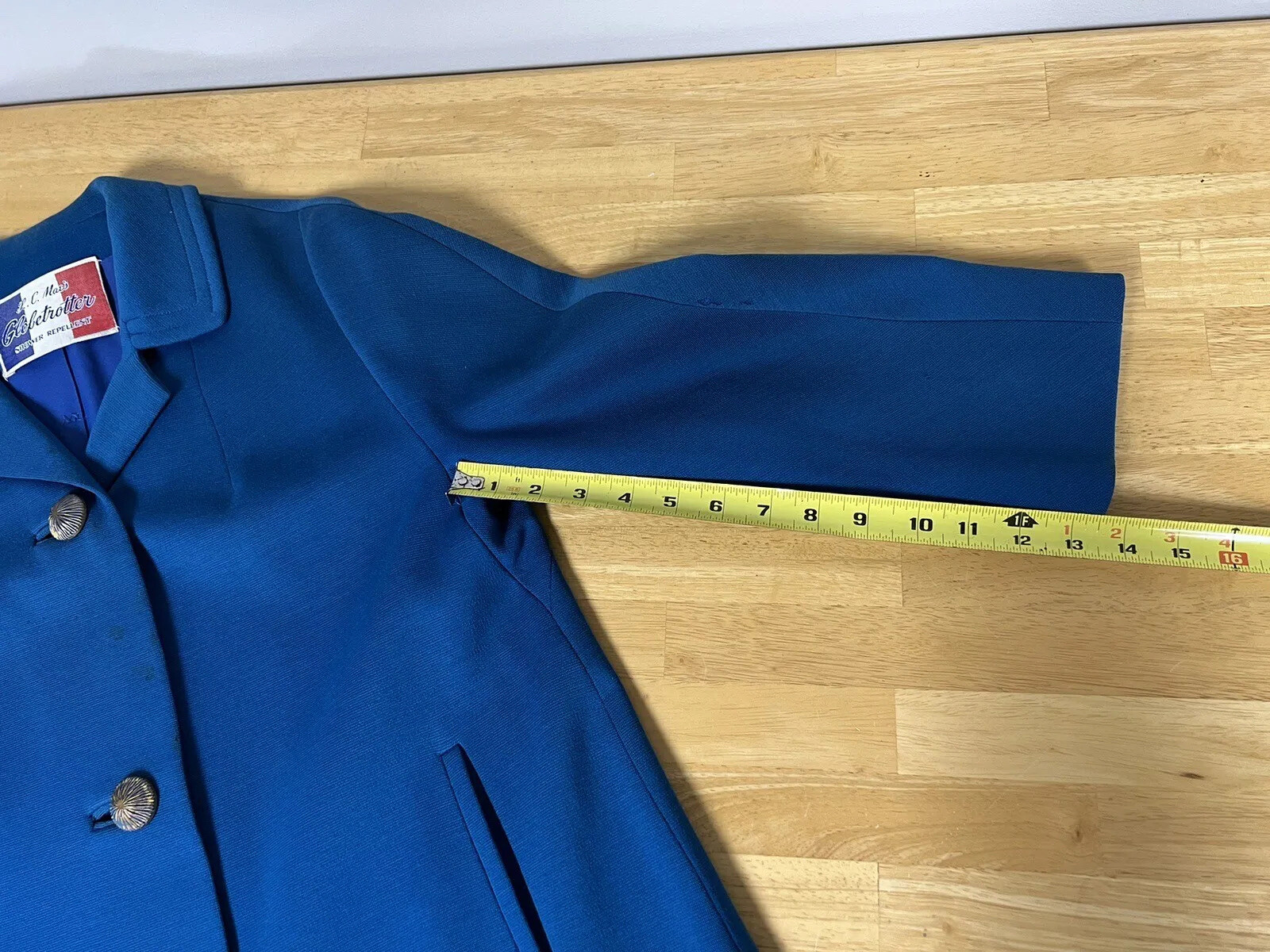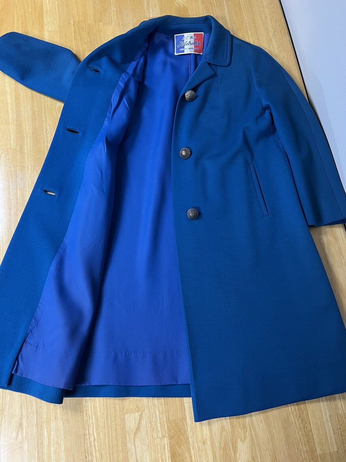 как выглядит Vtg Wool L.C. Mae Globetrotter Blue Coat Lined Retro Button фото