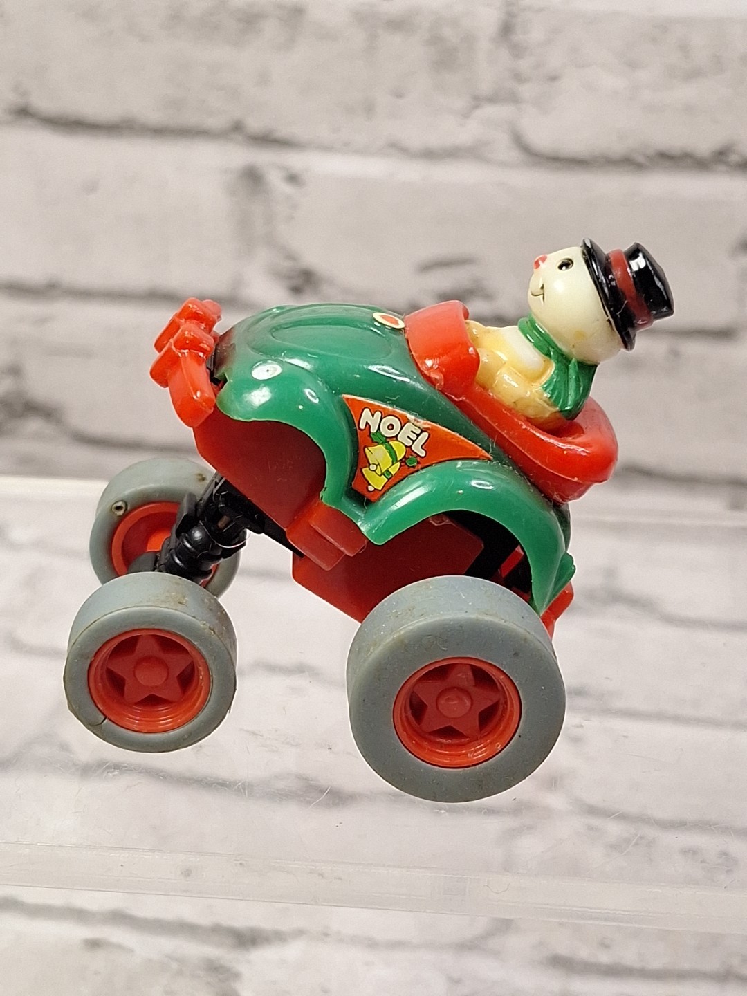 Vintage Snowman In VW Beetle Push down wind up 2 Car Works Stocking Stuffer