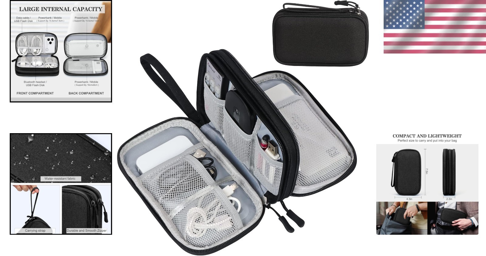 Lightweight Electronic Accessories Organizer - Waterproof 2 Compartment Design
