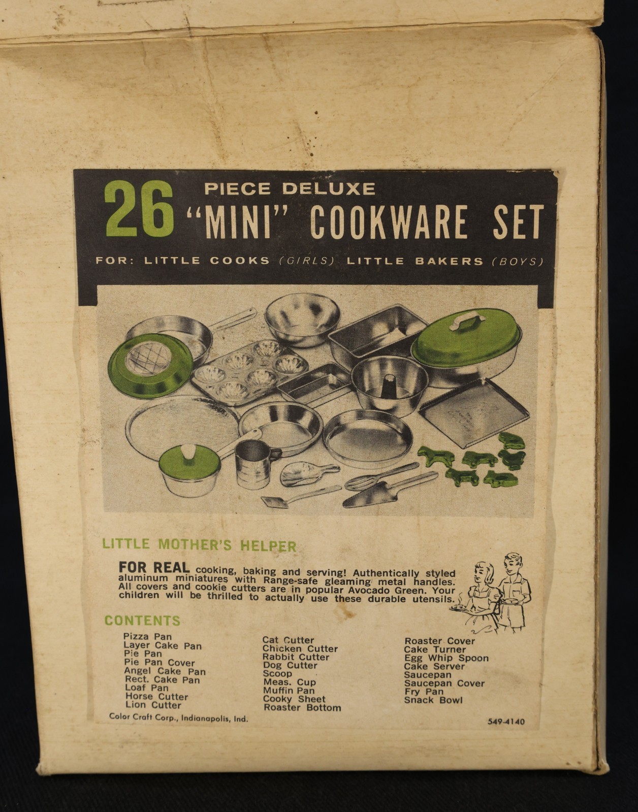 NOS Vintage Color Craft Aluminum Children's Play Cook Bake Set - 26 pieces
