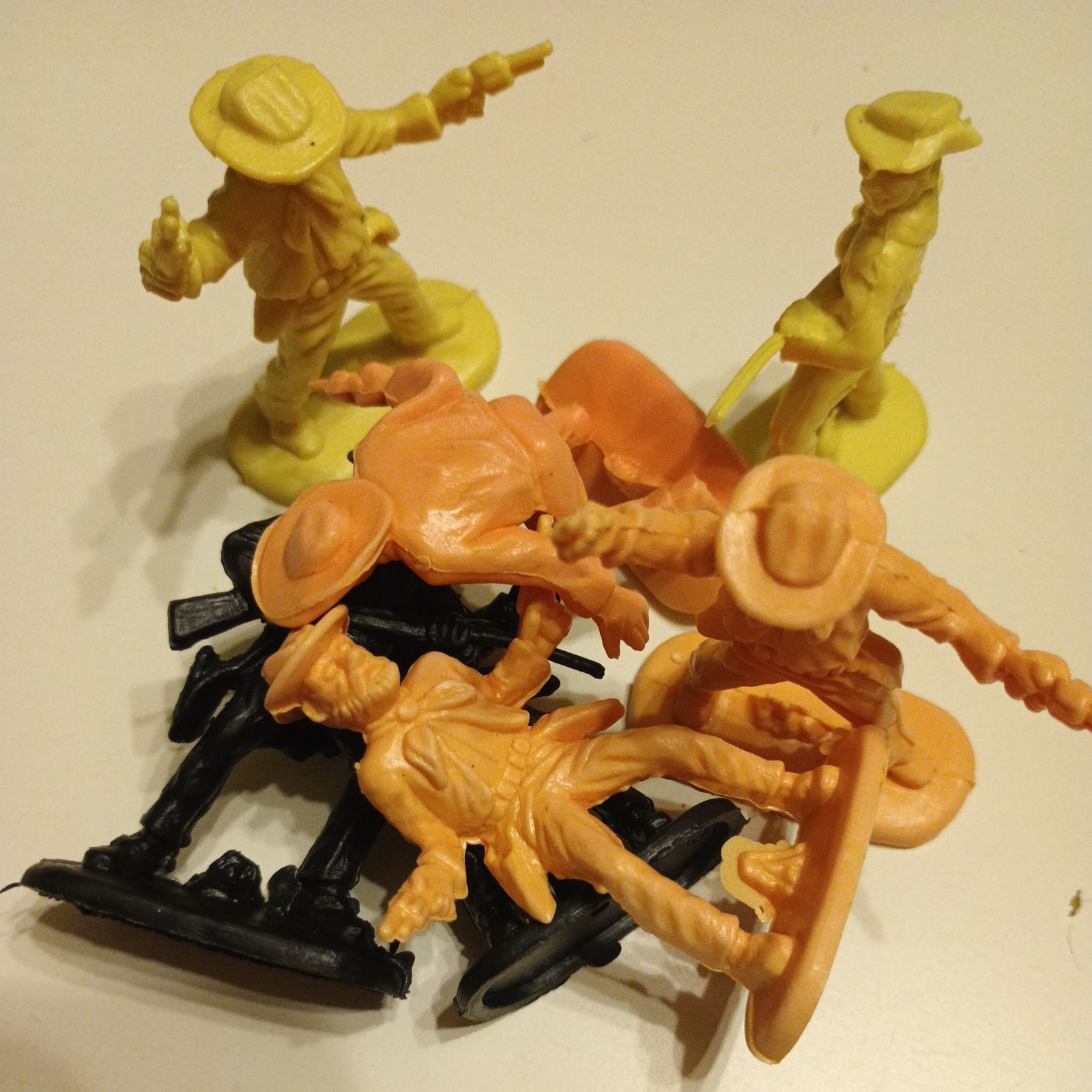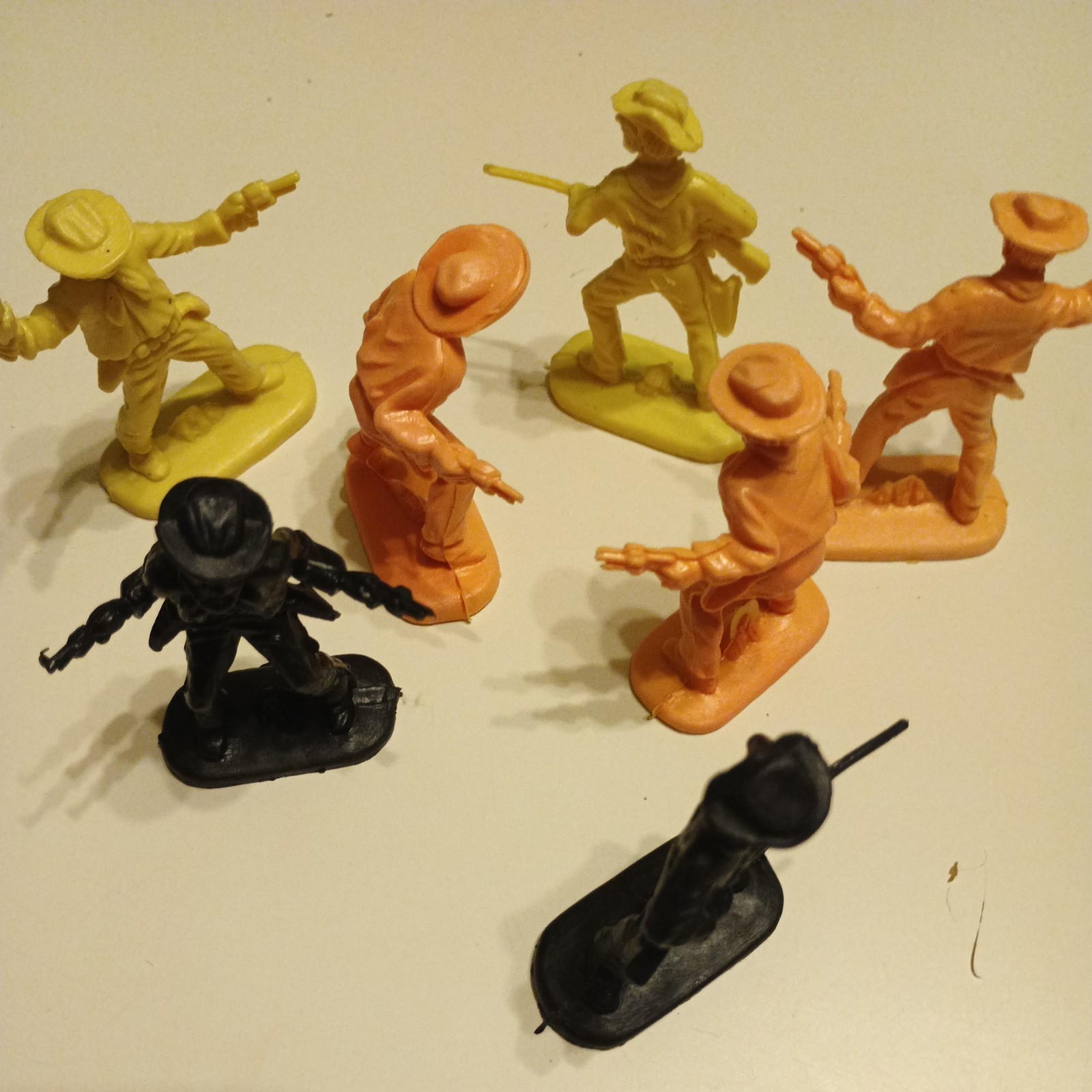 как выглядит Vintage Hong Kong Hard Plastic Cowboys 2 Inches Tall Lots 7 Mixed Colors фото