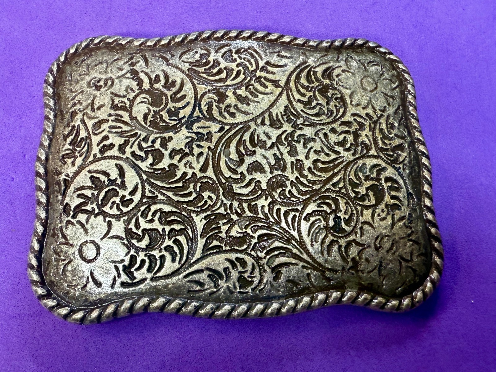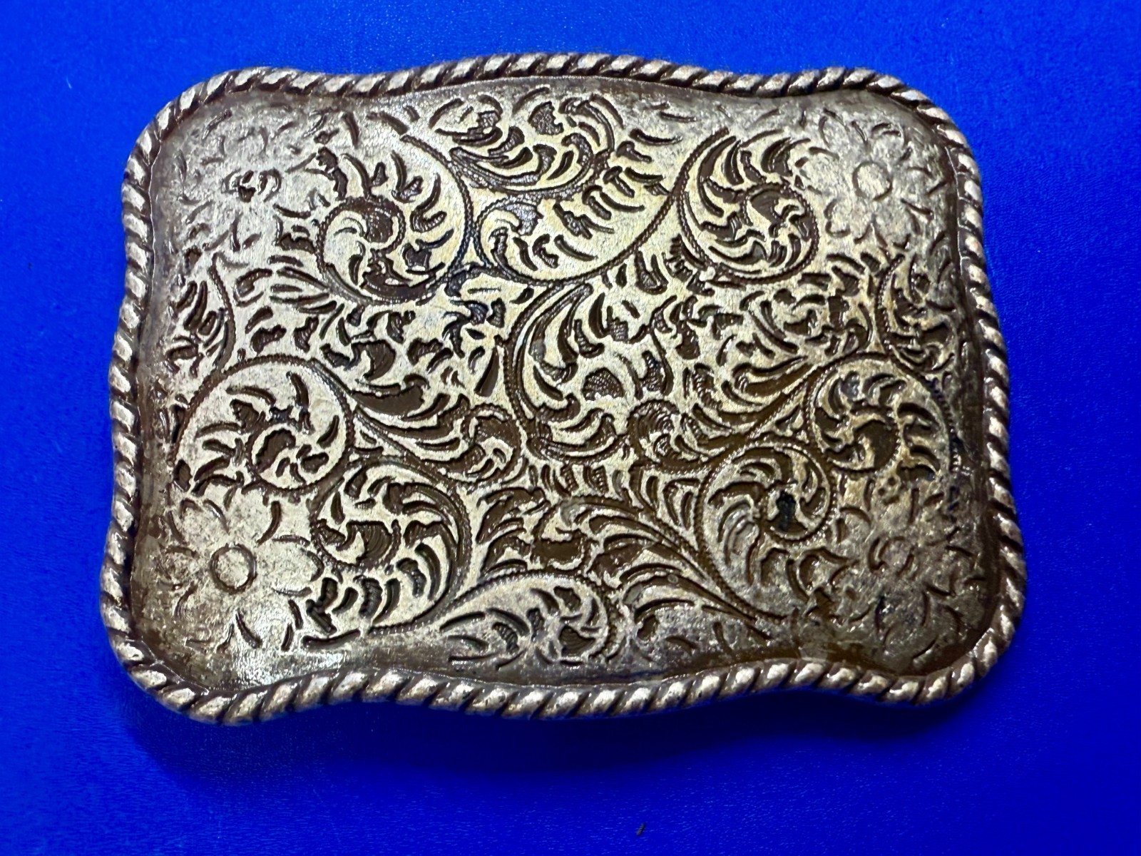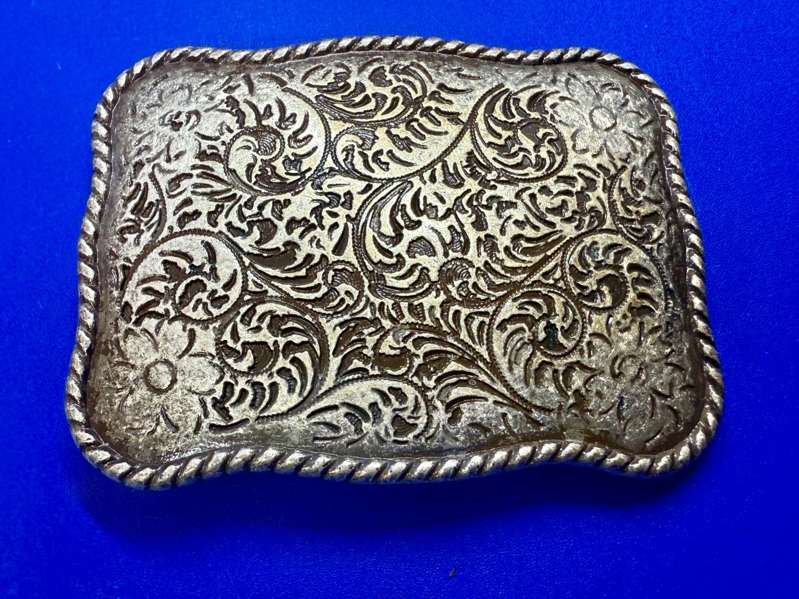 как выглядит Western Flower Swirl Design Silver Tone Belt Buckle W/ Thick Rope Boarder фото