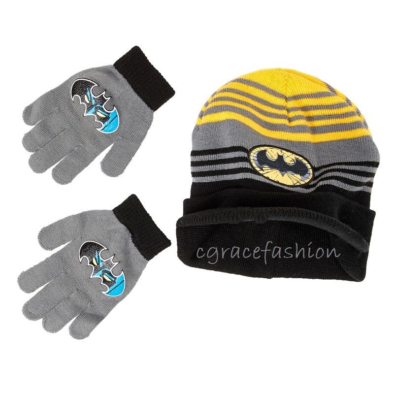 DC Comics Batman Logo Kid Boys Beanie Winter Ski Cap Hat Brim Visor Gloves Set