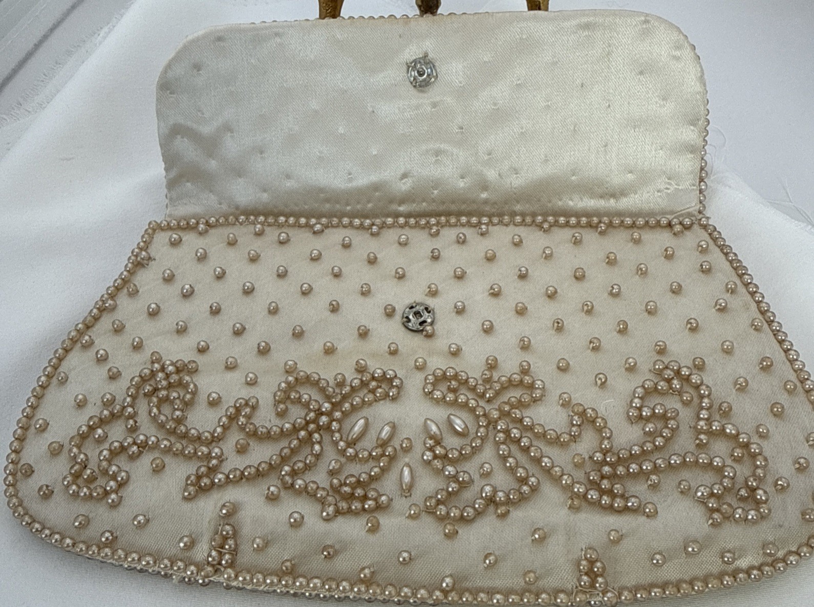 White/Ivory Beaded Clutch Evening Bag Purse Made in Japan