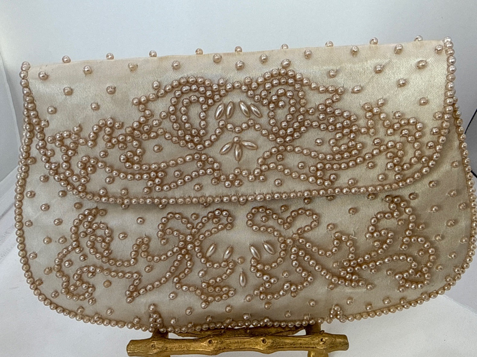 как выглядит White/Ivory Beaded Clutch Evening Bag Purse Made in Japan фото